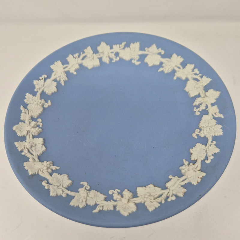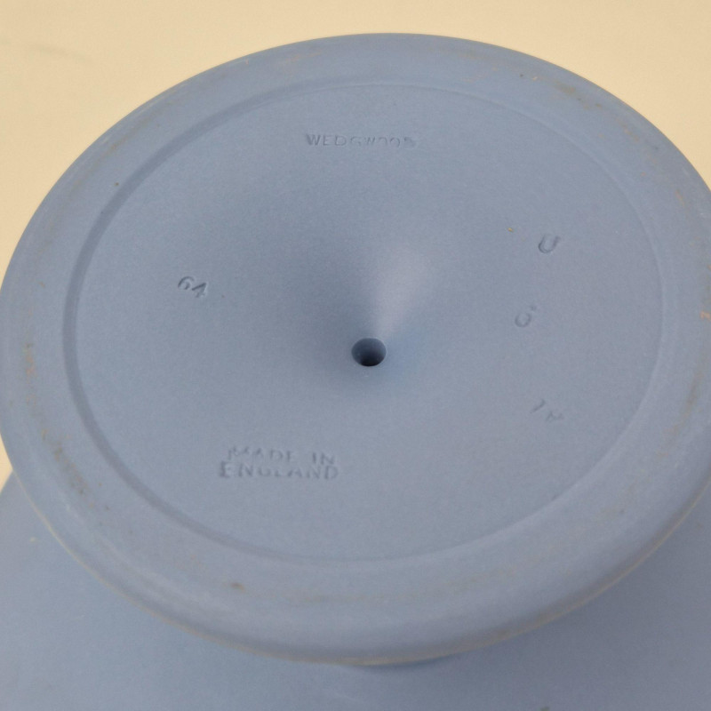 A graceful trio of classic blue Jasperware by Wedgwood, featuring: All pieces showcase the iconic matte blue finish with white bas-relief neoclassical motifs. Timeless and refined, this set adds elegance to mantel, table, or shelf—perfect for collectors or lovers of fine English ceramics.