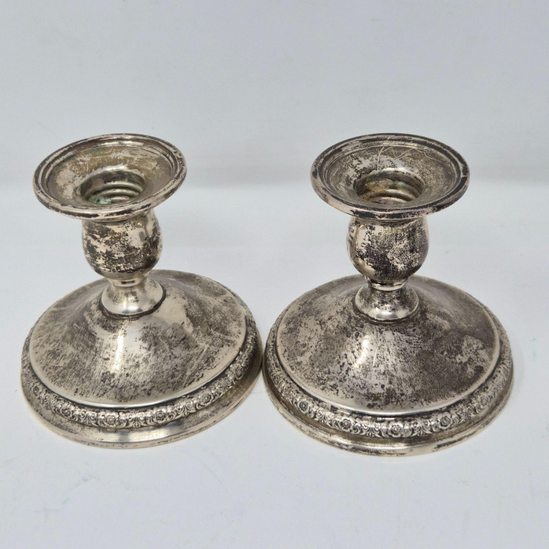 Lot # 16 - Weighted Sterling Silver Candle Holders – English & Prelude Intl.