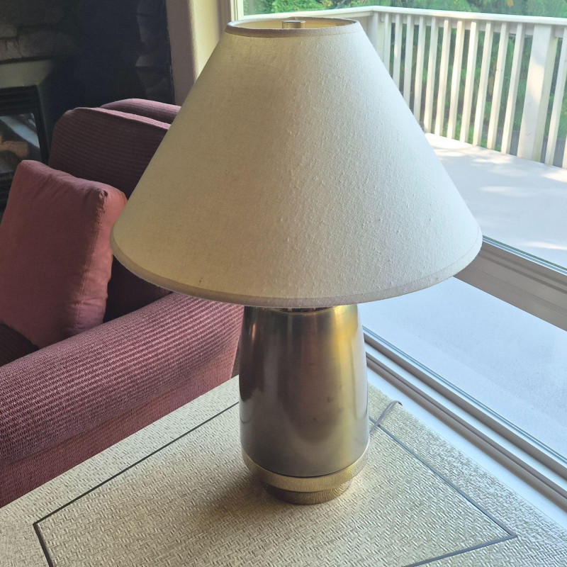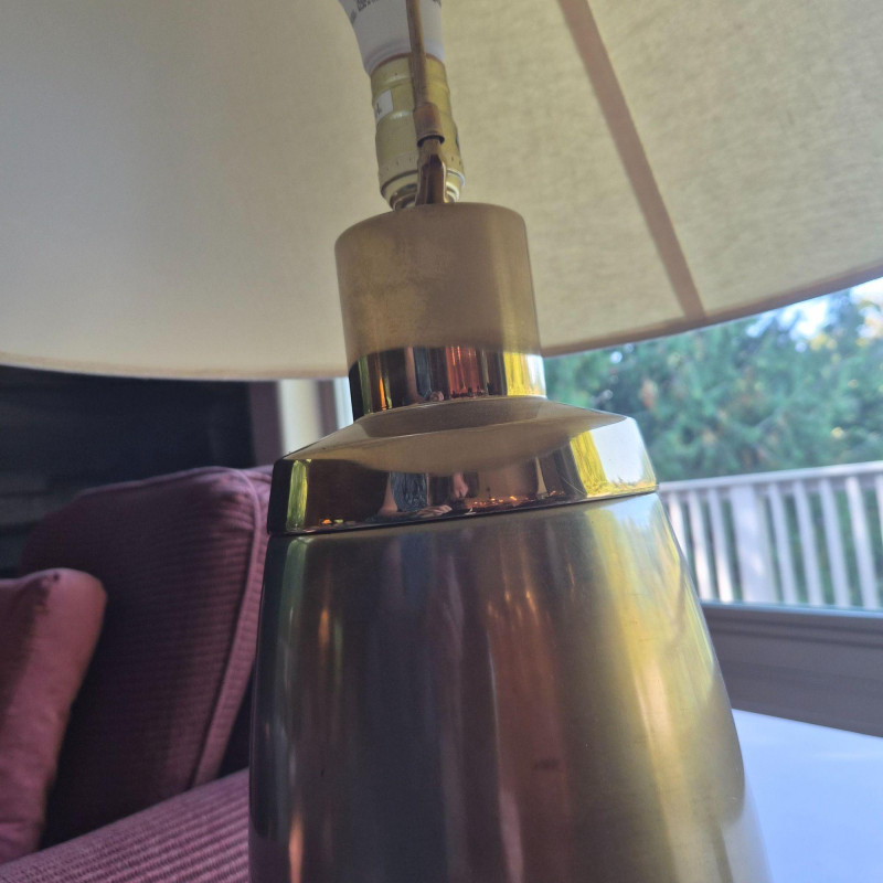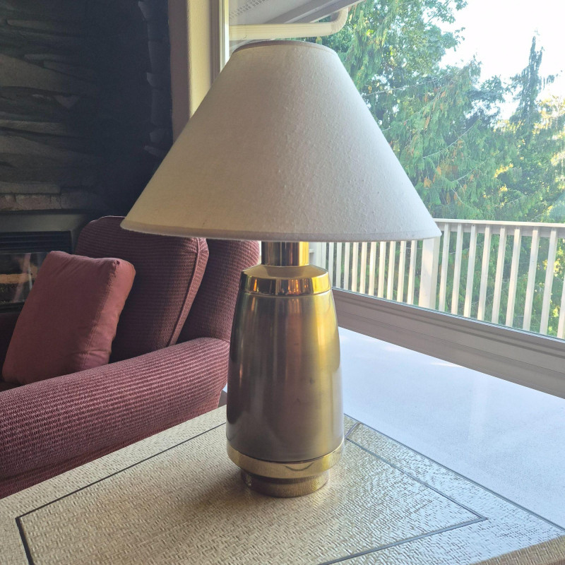This stately brass table lamp brings warmth and sophistication to any space. Standing 28" tall with a 7.5" base diameter, it features a sleek silhouette and rich golden finish. The bell-shape shade, measuring 19" x 12", adds visual balance and soft ambient light—perfect for a reading nook, side table, or vintage-inspired interior. A well-made piece with enduring style, ready to illuminate your space with character and charm.