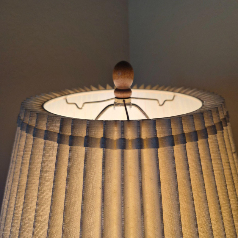 Lot # 53 - Large Brass Table Lamp with Pleated Shade – Wood Base & Finial