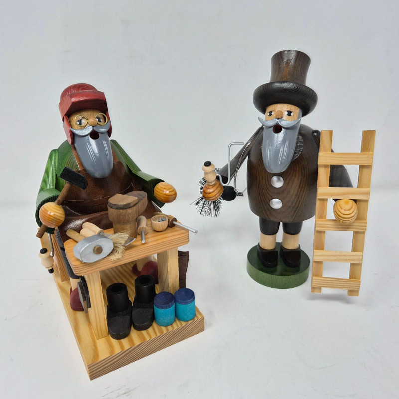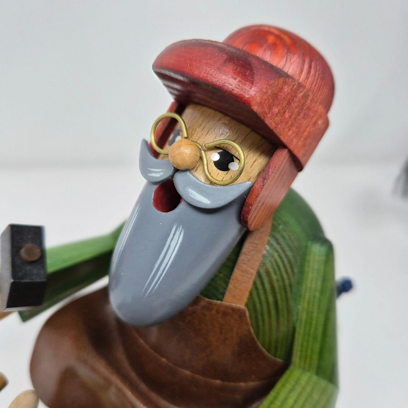 A delightful pair of traditional German incense smoker figurines (Räuchermänner) from the Ore Mountains (Erzgebirge), crafted by KWO. These wooden figures are part of the “Die Bärtigen” (“The Bearded Ones”) series and are designed to burn cone incense, with smoke emerging from the mouth for a whimsical effect Both are likely made of beechwood and showcase hand-painted details and hollowed interiors for incense placement. A charming example of German folk art and holiday tradition—perfect for seasonal display or year-round collectors of Erzgebirge craftsmanship.