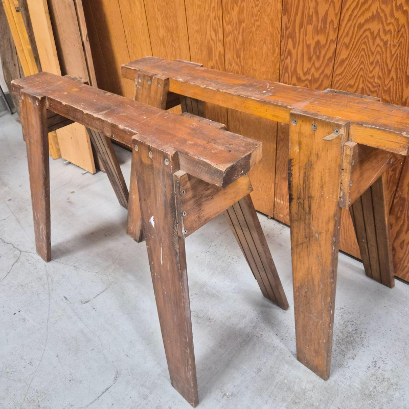Lot # 81 - Vintage Handmade Wood Sawhorses (Pair)