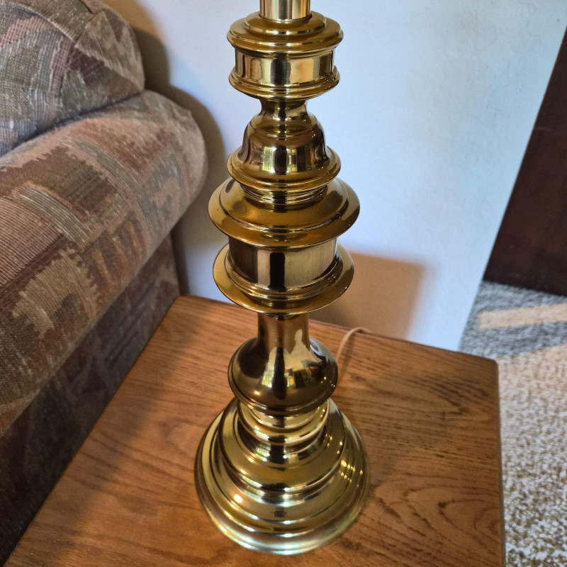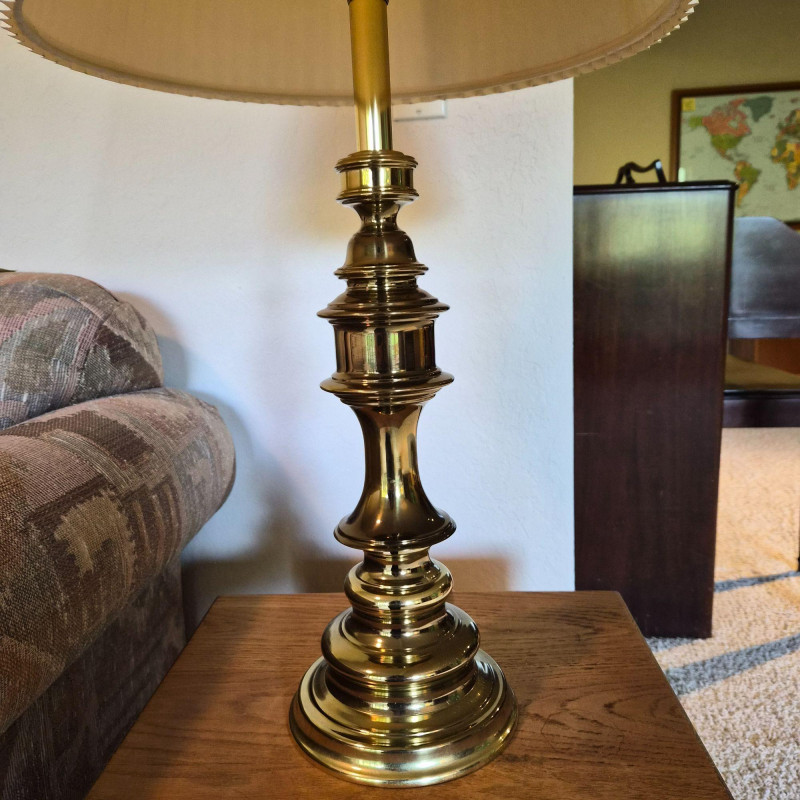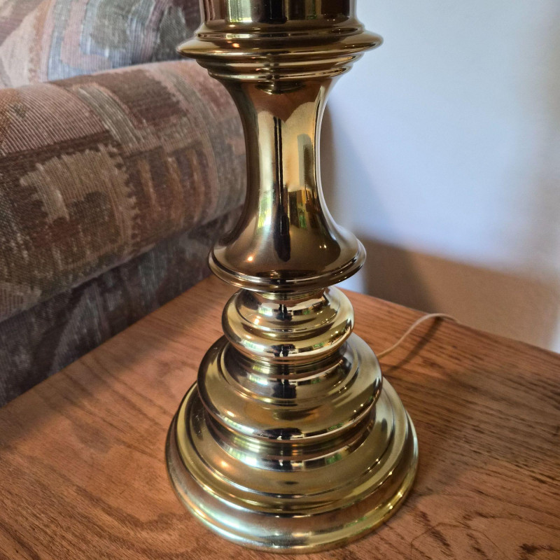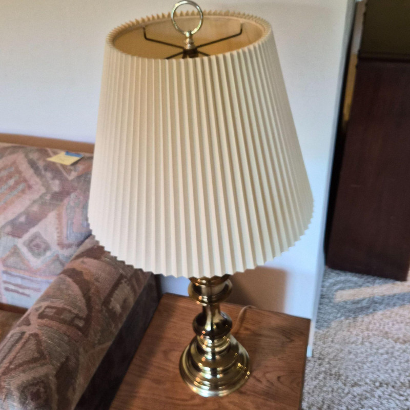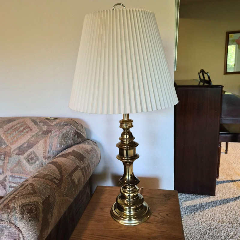 A classic pillar-style table lamp in polished brass and pleated shade, standing 33" tall with a 7" base diameter. The column silhouette offers timeless appeal, ideal for traditional, transitional, or vintage-inspired interiors. Solid construction with warm metallic sheen—ready to elevate a side table, desk, or reading nook.