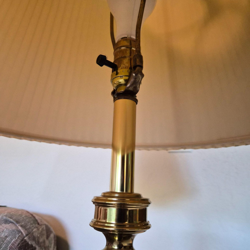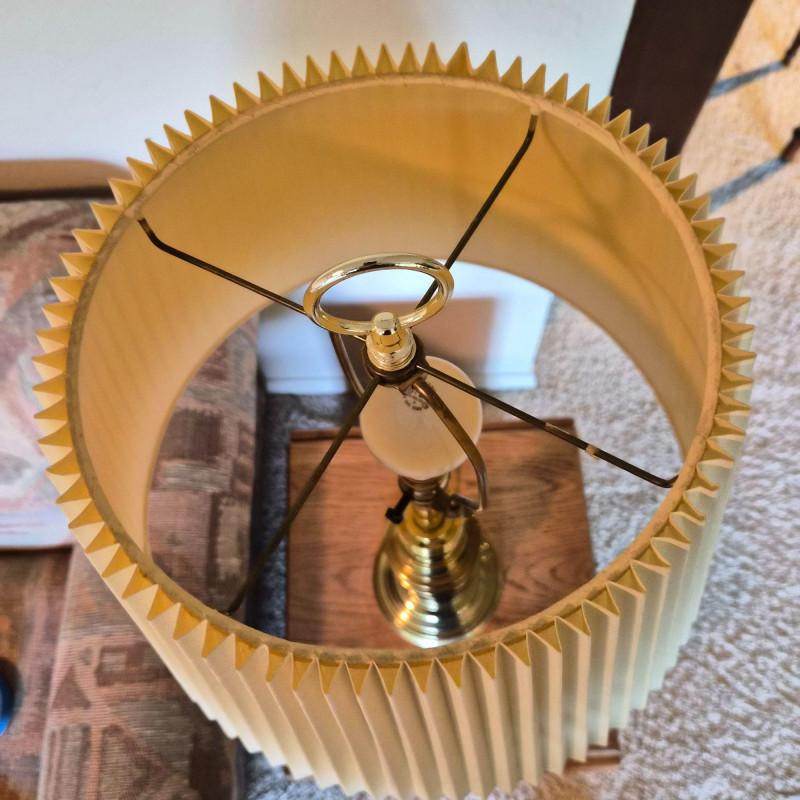 Lot # 71 - Pillar-Style Brass Table Lamp with Pleated Shade