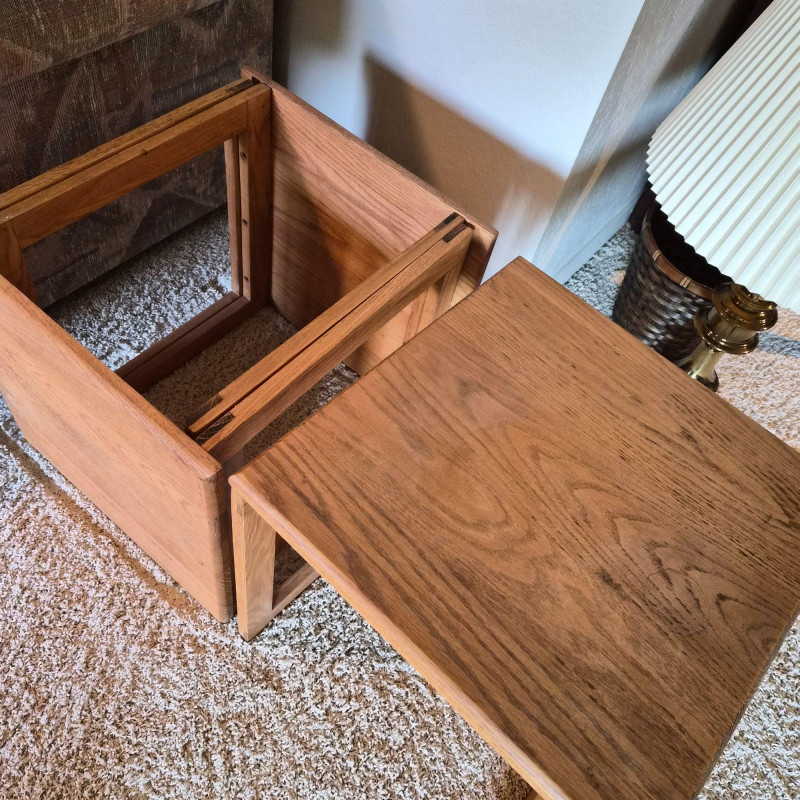 Lot # 82 - Unique 3-Piece Wood Nesting Puzzle Cube Tables