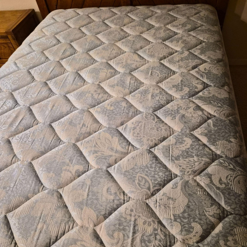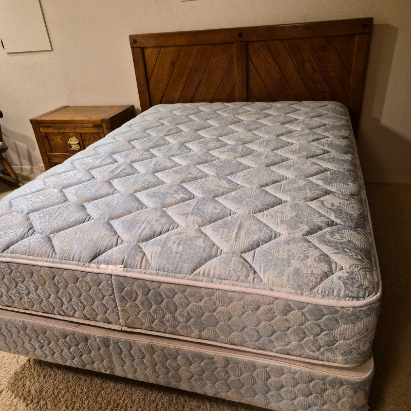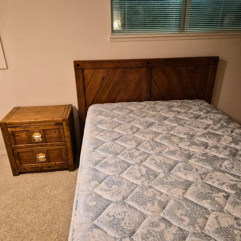 Double (full) bed setup, ready to comfort you with structure and timeless simplicity. This set includes: Whether furnishing a guest room, upgrading a rental, or outfitting a cozy retreat, this bed set provides everything you need in one easy lot—no fuss, just function and comfort.