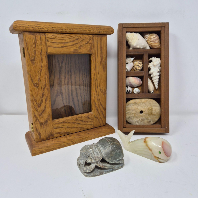 Lot # 117 - Shadowbox of Natural Treasures - Shell, Alabaster & Soapstone