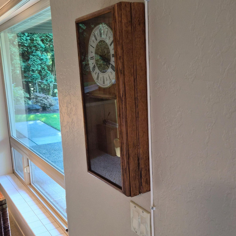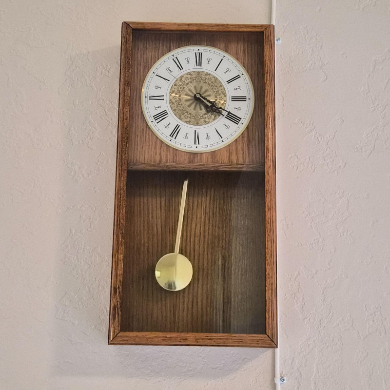 Pendulum wall clock with battery-powered convenience and an elegant, elongated profile. Measuring 23" tall x 11" wide x 4" deep, this unbranded piece offers quiet motion and traditional styling without the need for winding. Its clean lines and neutral finish make it a versatile addition to hallways, kitchens, or studies—bringing rhythm and refinement to any wall. A great choice for those who appreciate classic design with low-maintenance function.