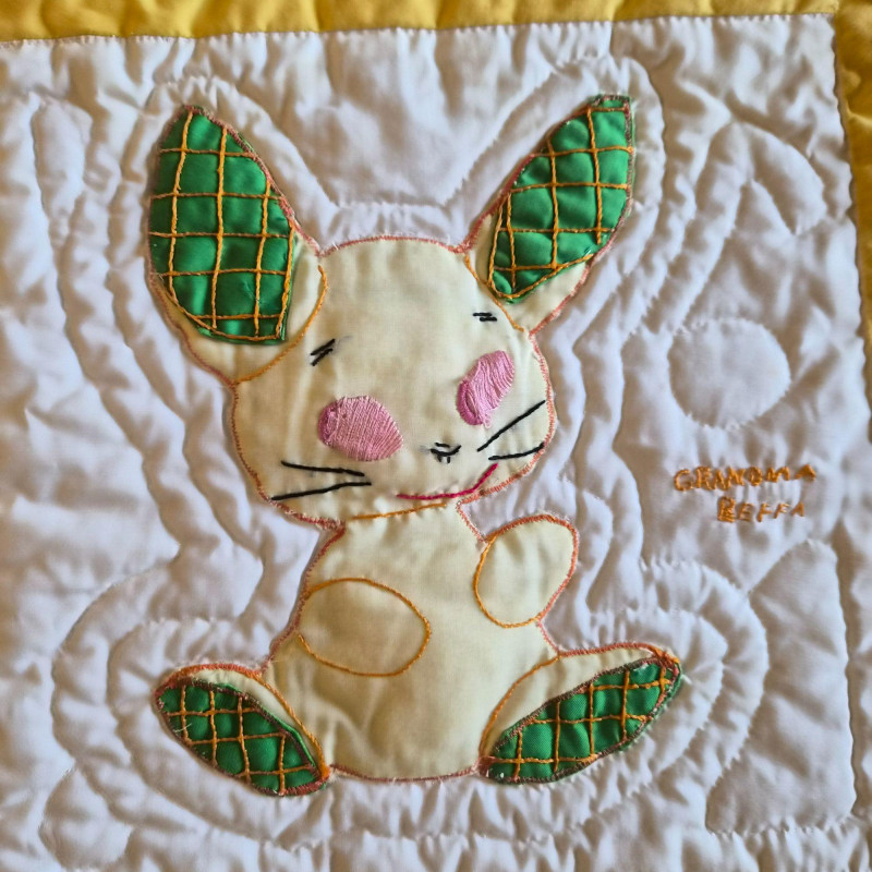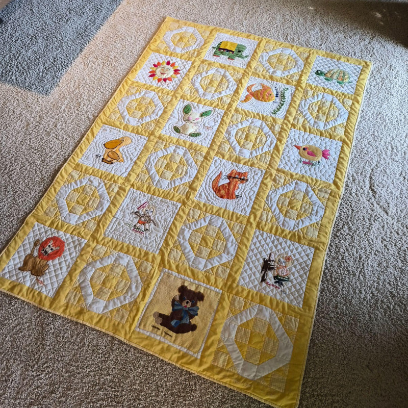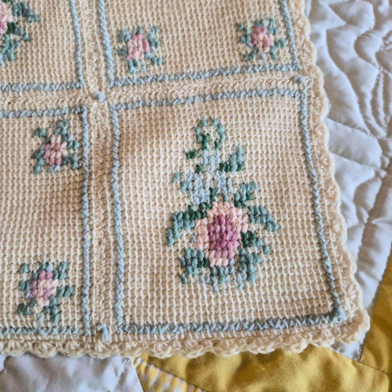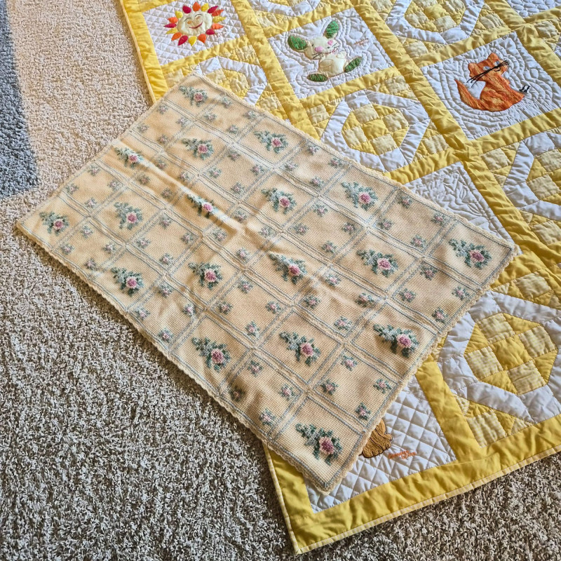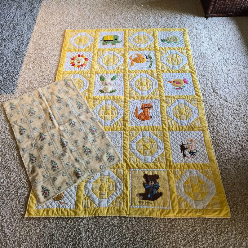 Lot # 144 - Vintage Yellow Baby Quilt & Knitted Blanket