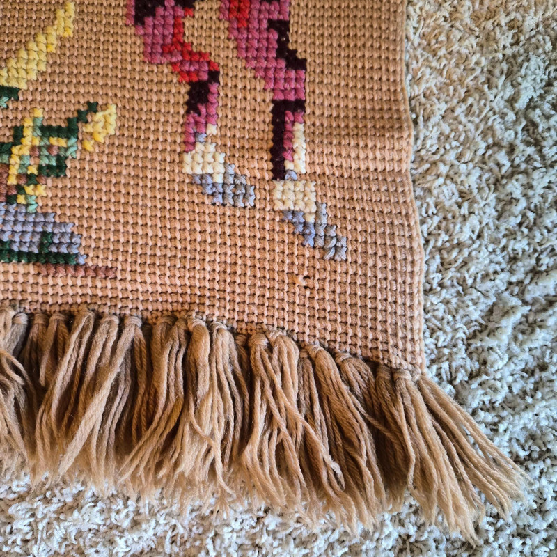 Fringe ends add a cozy finish, while the wool construction offers both warmth and heirloom quality. Whether draped over a fireside chair, folded at the foot of a bed, or displayed as textile art, this piece brings pastoral romance and handmade character to any space.