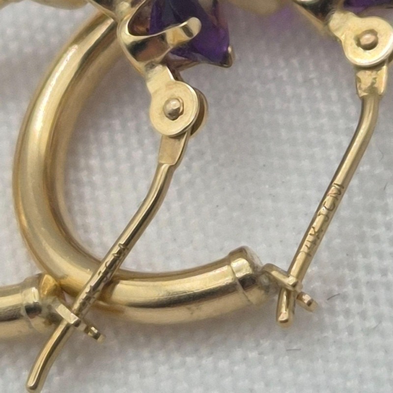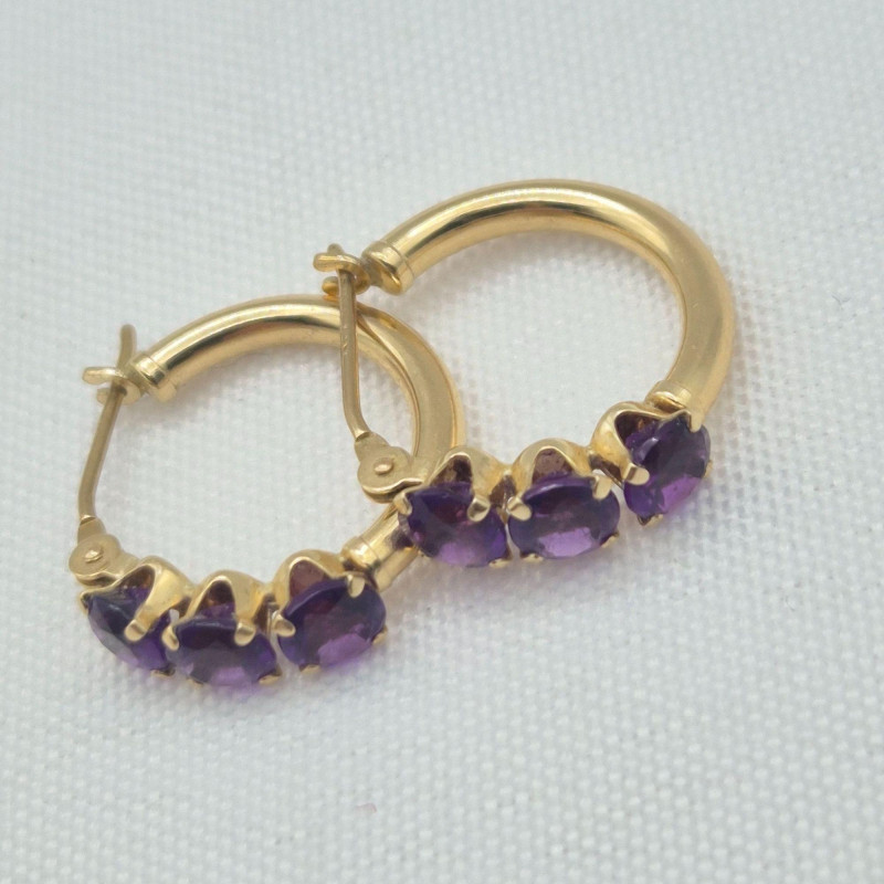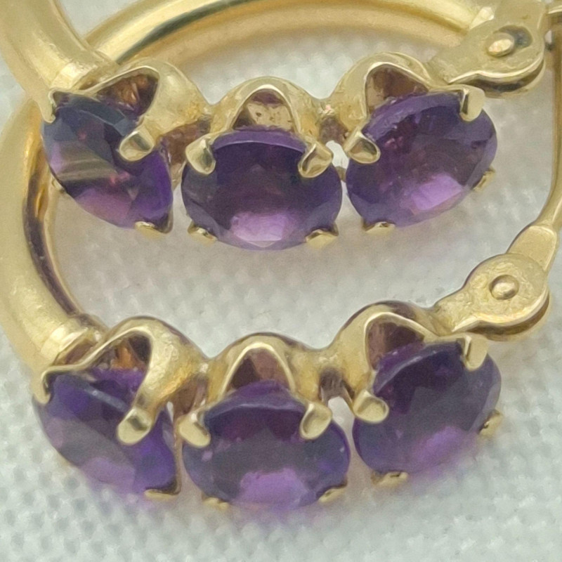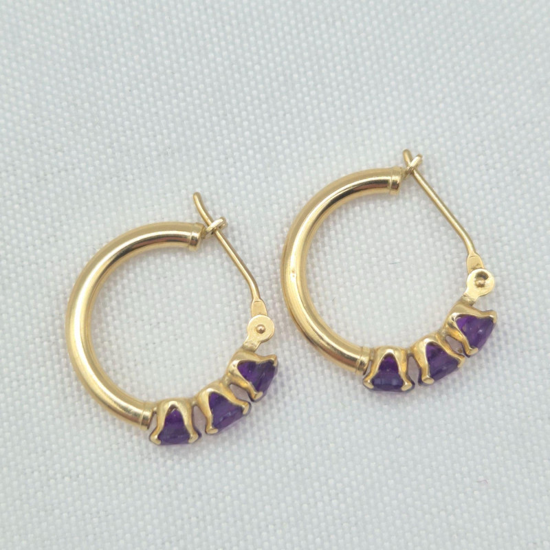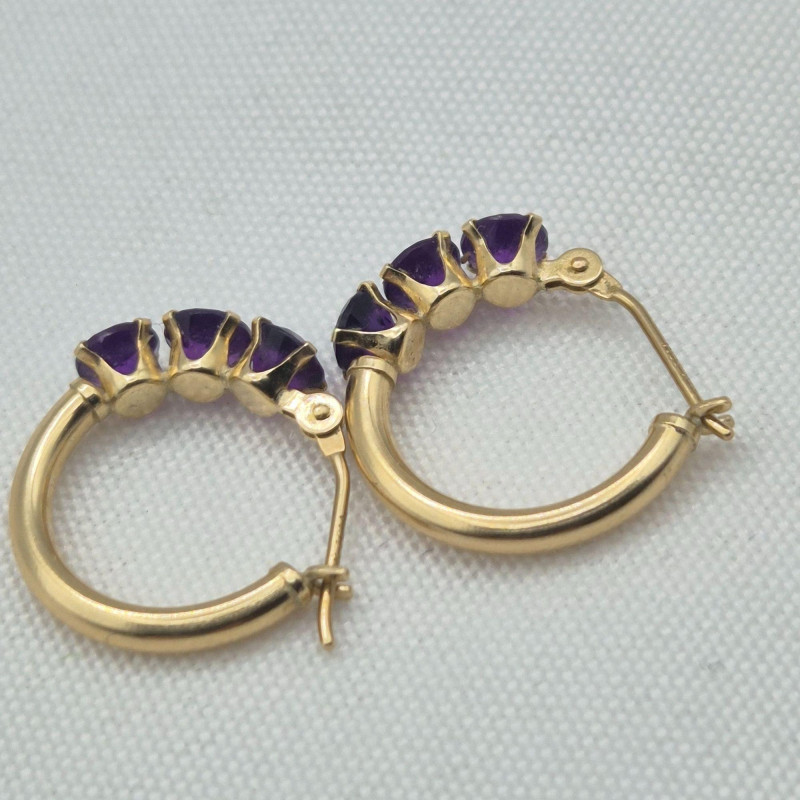 Lot # 1 - 14k Gold Three Stone Amethyst Earrings