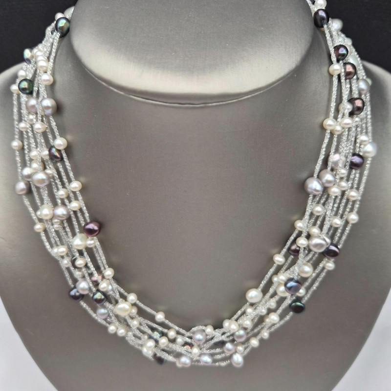 Lot # 4 - Layered Elegance - Stunning Genuine Pearl Multi-Strand Necklace, 925