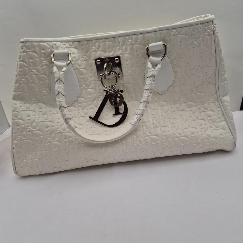 Lot # 6 - Dior-Style Embossed Cream Trotter Bag, Italy