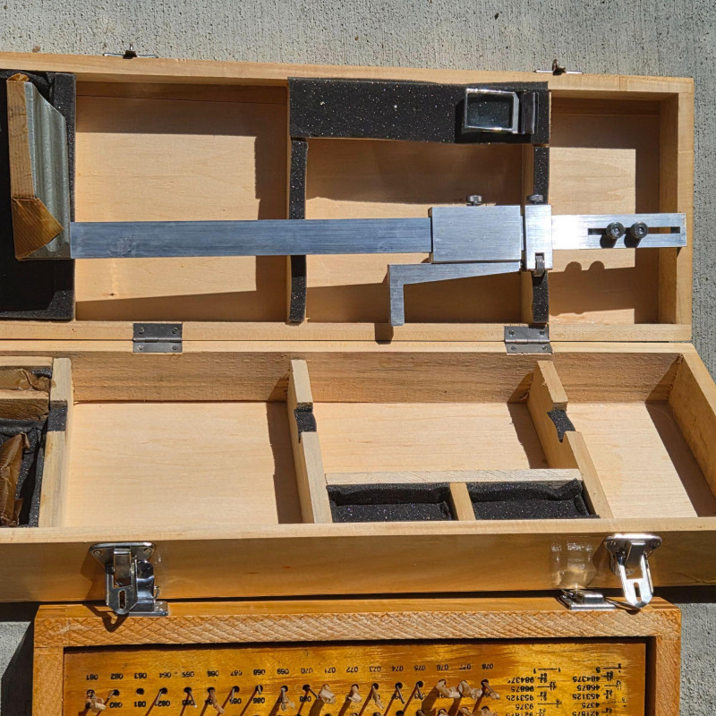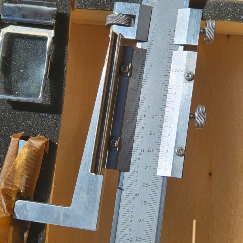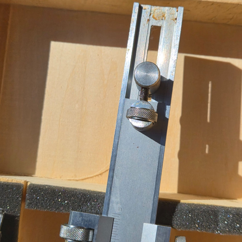 Vernier Height Guage. This precision measuring tool is used to accurately measure vertical distances or heights of objects, especially in machining and engineering. Pin gage set (also known as plug gages), which are cylindrical pins of highly precise diameters used for inspecting the inner diameters of holes, checking slot widths, or setting other measuring instruments like micrometers.