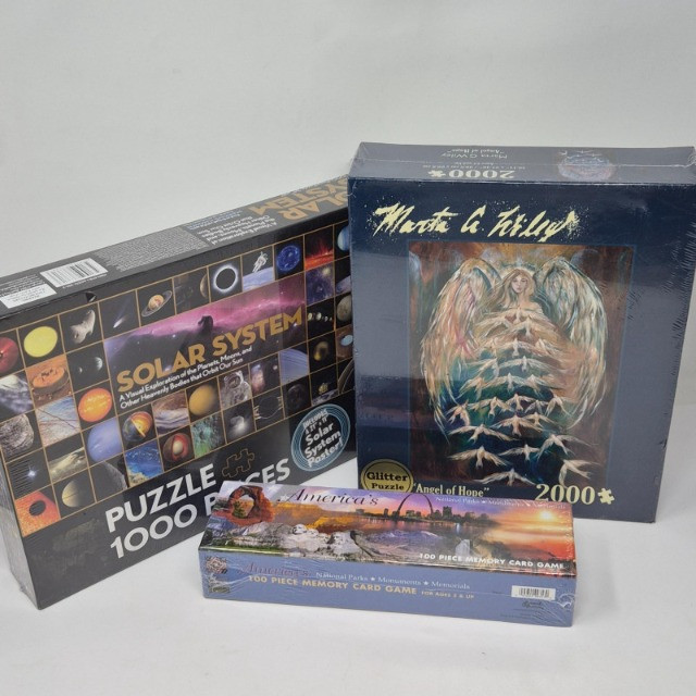 Sealed puzzles and games, perfect for collectors, families, or anyone who loves a good challenge. Includes: All items are factory sealed and ready for play or gifting. A vibrant mix of pop culture, nature, art, and science in one engaging lot.