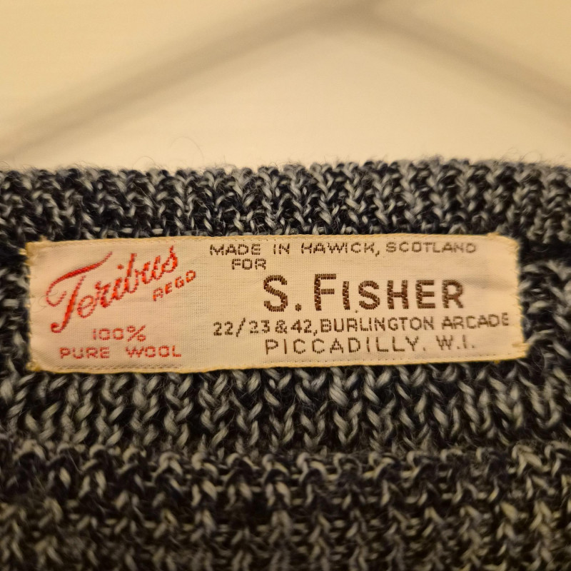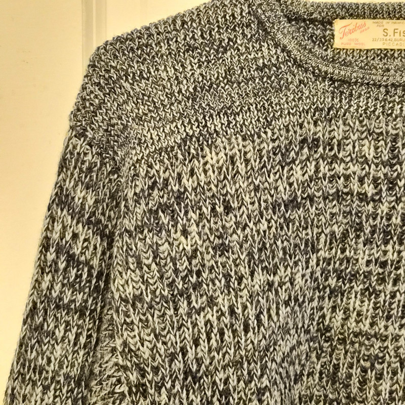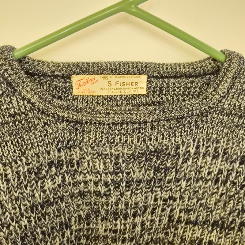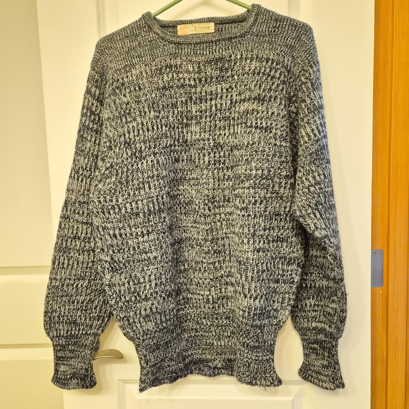 Lot # 25 - Vintage S. Fisher Wool Sweater – Grey/Black Knit, Made in Scotland