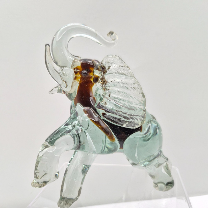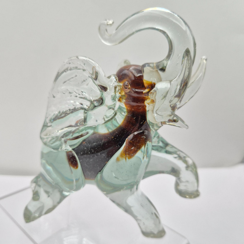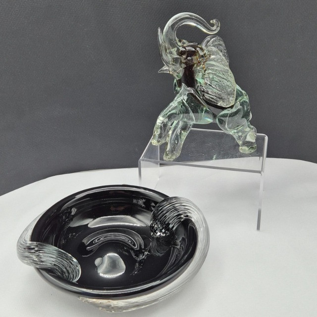 Lot # 43 - Deco Glass Bowl & Vintage Elephant Figure with Trunk 'Up'