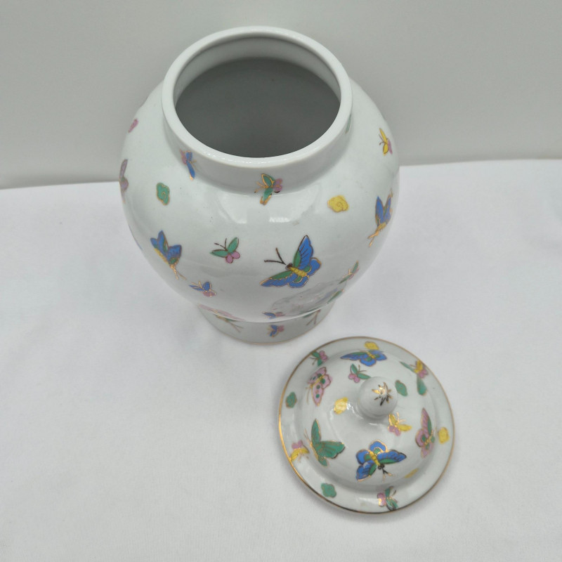 Lot # 45 - Chinese Ginger Jar with Butterflies Bell-Shaped Ceramic 11-Inch