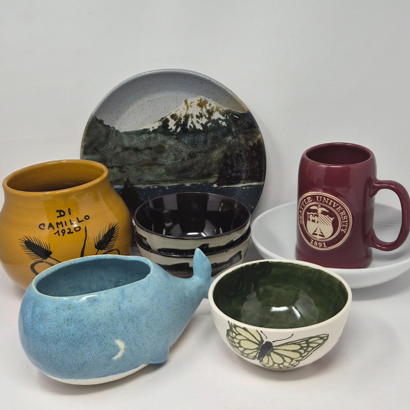 Lot # 52 - Pottery Mix - Mountain Plate, UW Stein, Italy Basket, Whale Planter