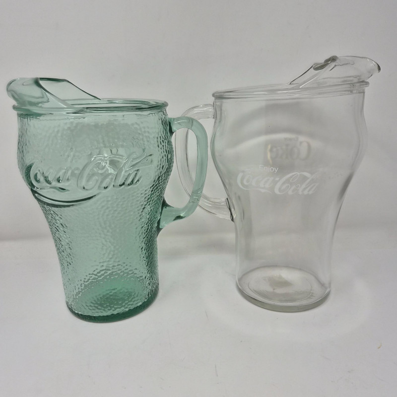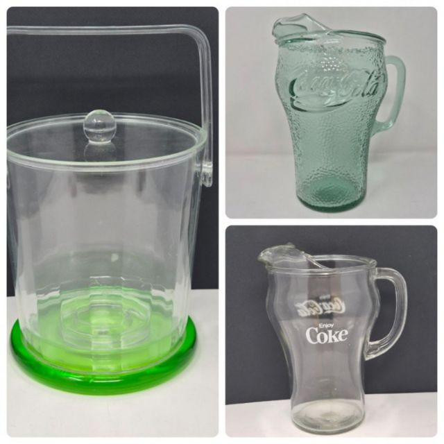 Lot # 58 - Coca-Cola Glass Beverage Service: Glass Pitchers & Acrylic Ice Bucket