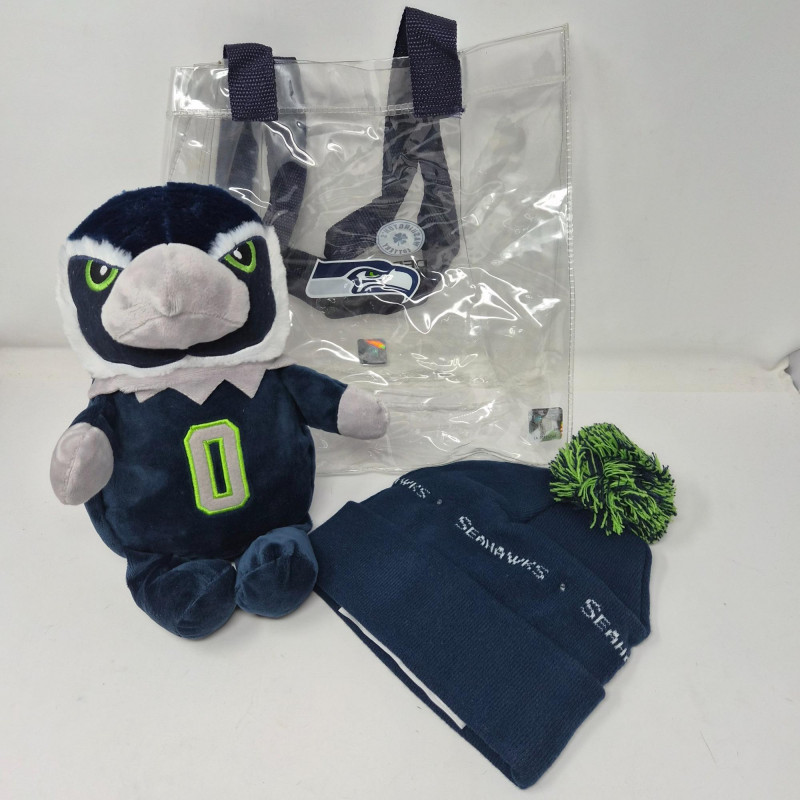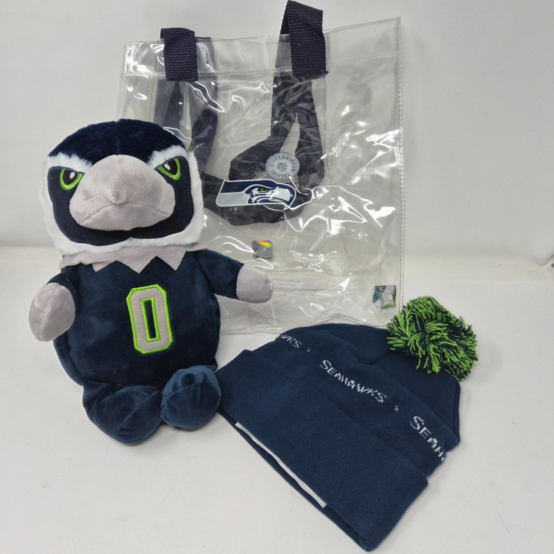 Lot # 64 - Seattle Seahawks Fan Gear – Plush, Knit Beanie & Clear Stadium Tote