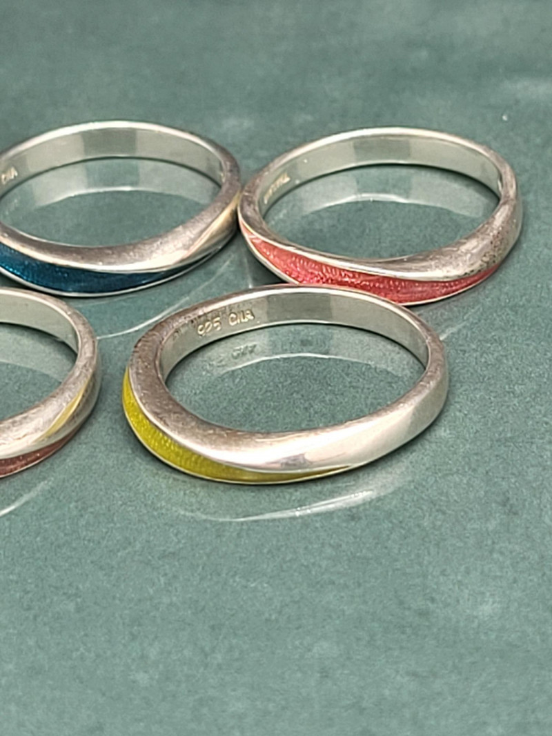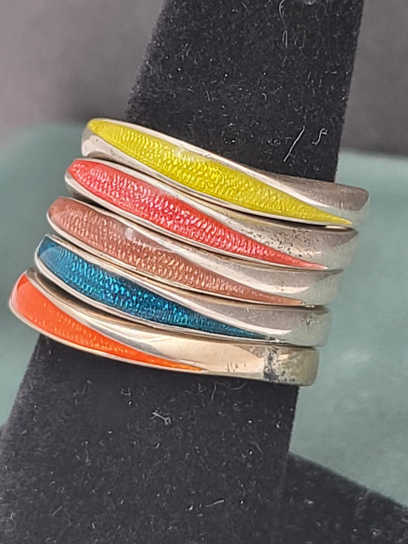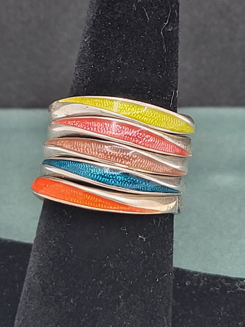 Lot # 66 - Set of 5 Stackable Sterling Silver Enameled Rings – Size 7