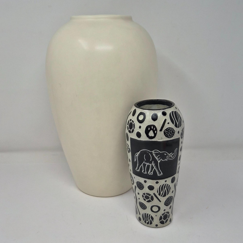 Lot # 69 - Haeger Pottery Vase & Kisii Stone Elephant Vase