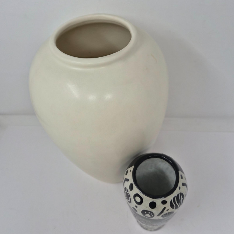 Pair of decorative vases that blend classic American pottery with Kenyan artisan stonework: