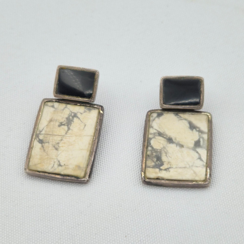 Lot # 73 - Sterling Silver Pierced Earrings – Malachite, Howlite & Onyx