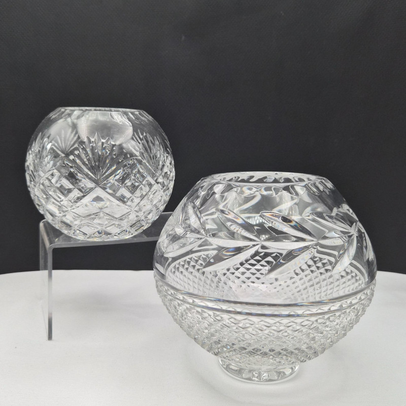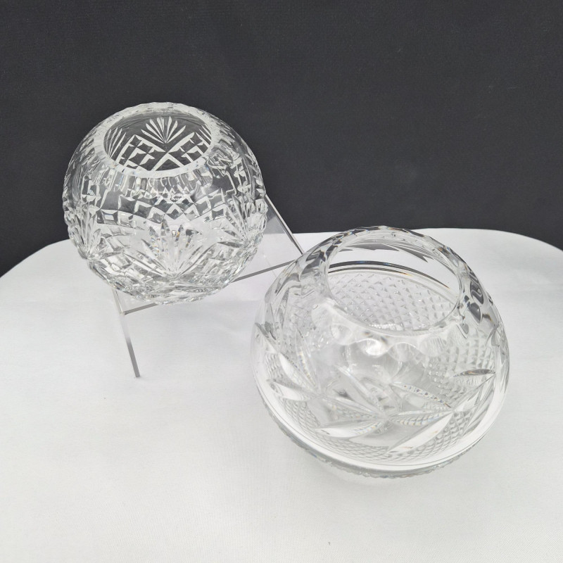 A timeless pair of crystal rose bowls, perfect for floral arrangements, votive displays, or elegant tabletop accents. This duo includes: Both feature classic rounded silhouettes with brilliant clarity and weight, ideal for gifting or adding sparkle to your décor. Their versatile size and understated elegance make them suitable for both traditional and modern settings.