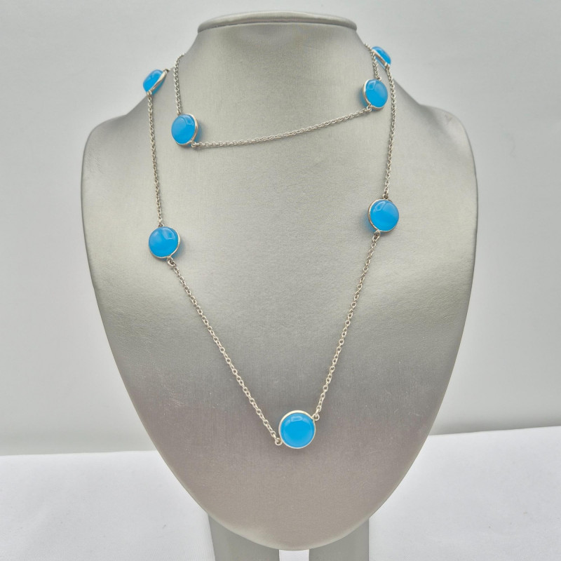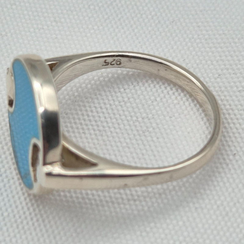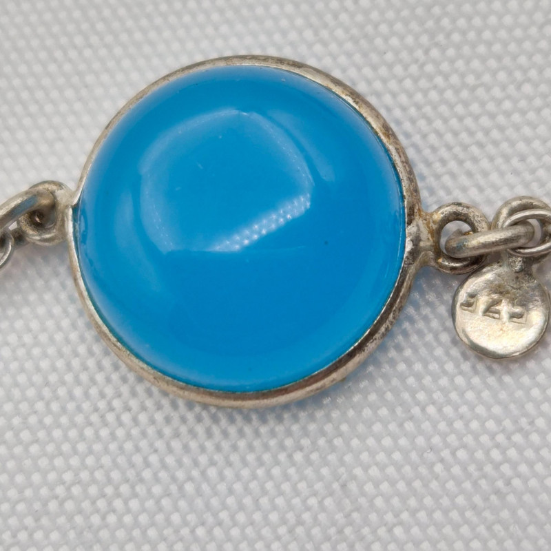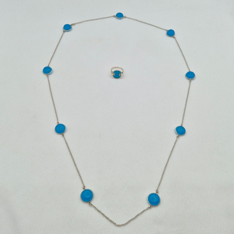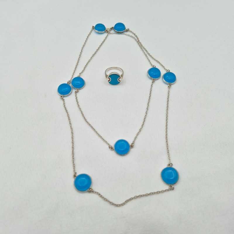 Lot # 95 - Cool Tones - Blue Glass Necklace, Turquoise inlay Ring, 925