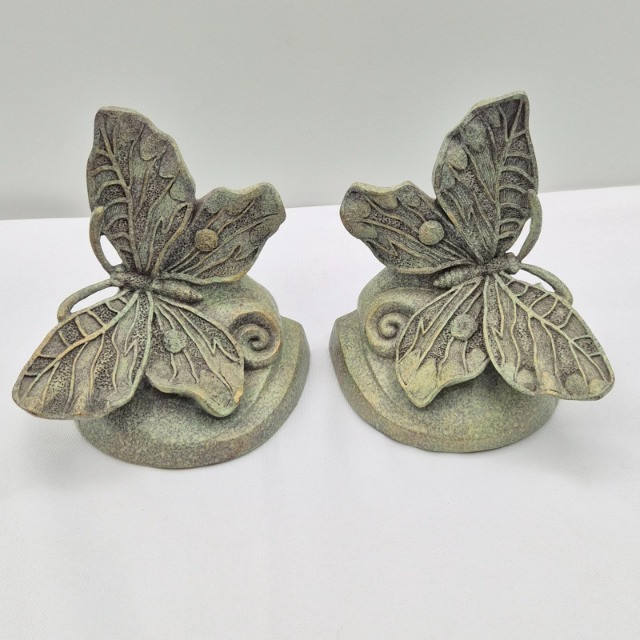 Lot # 96 - Stone-Look Resin Carved Butterfly Bookends (Pair)