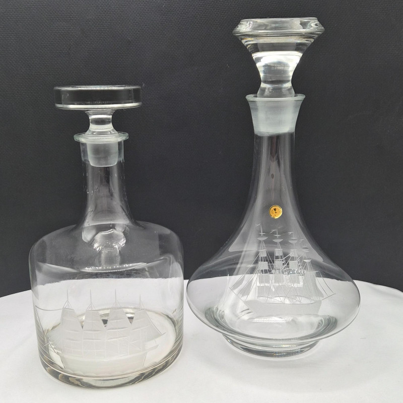 Lot # 99 - Sailing Spirits - Two Etched Decanters with Stoppers – Romania
