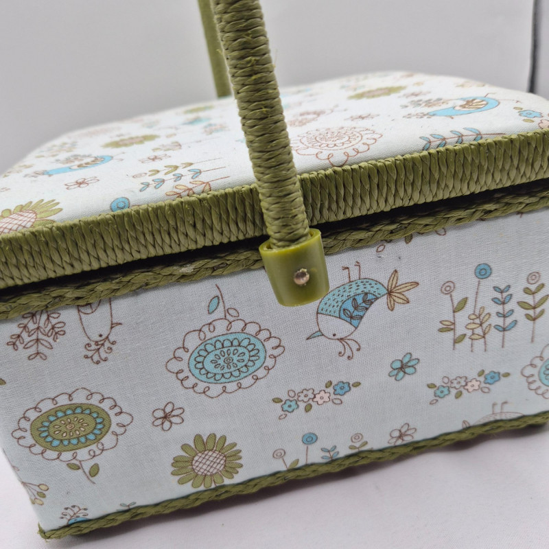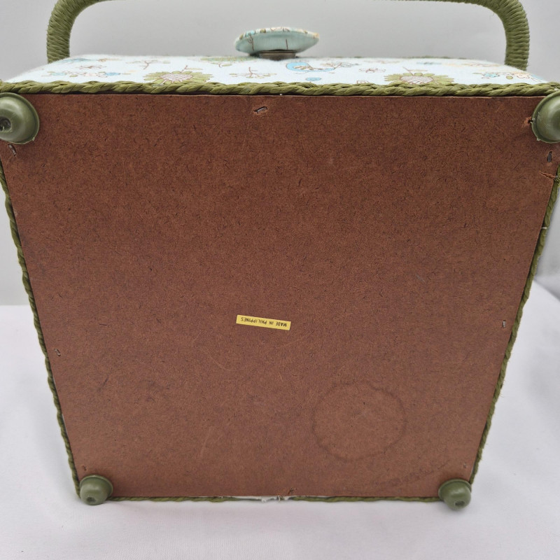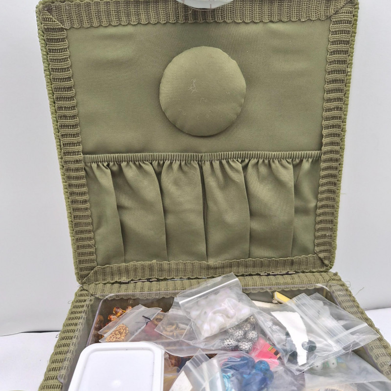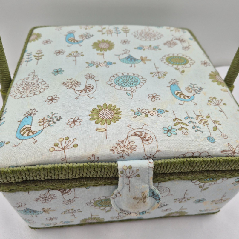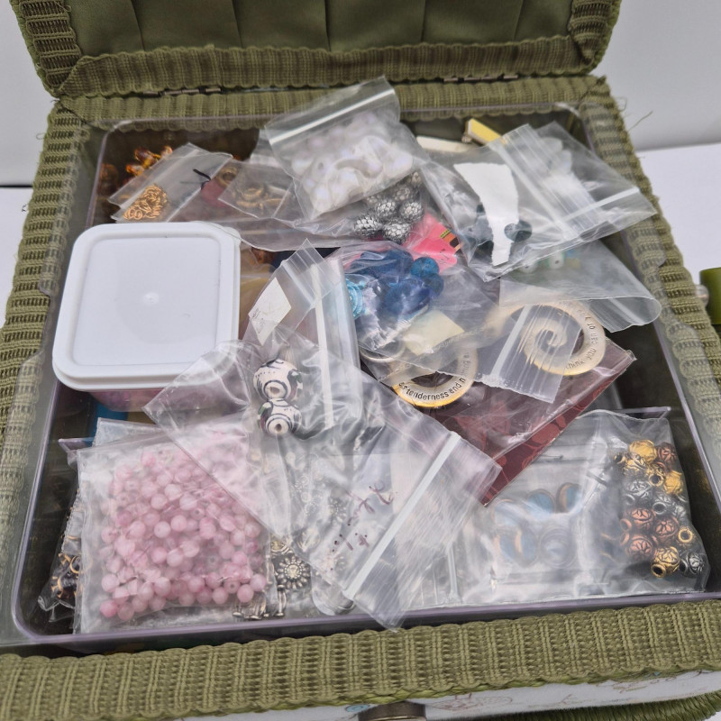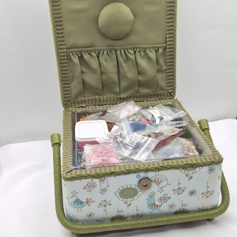 Lot # 108 - Sewing Box Birds Pattern - Filled with Craft & Beads