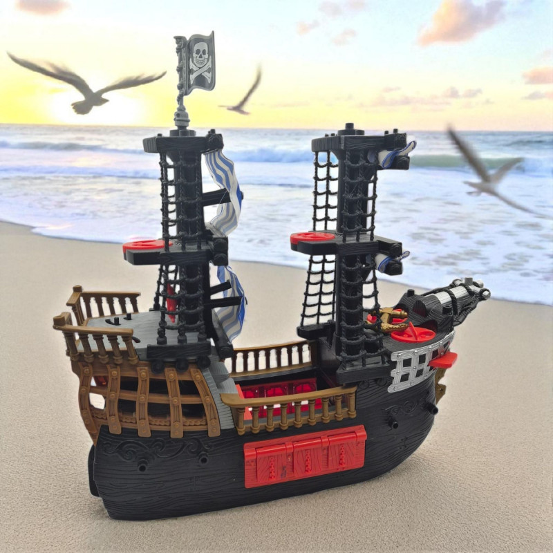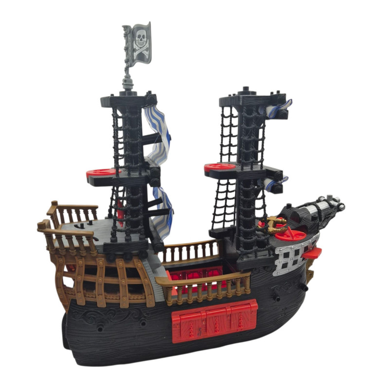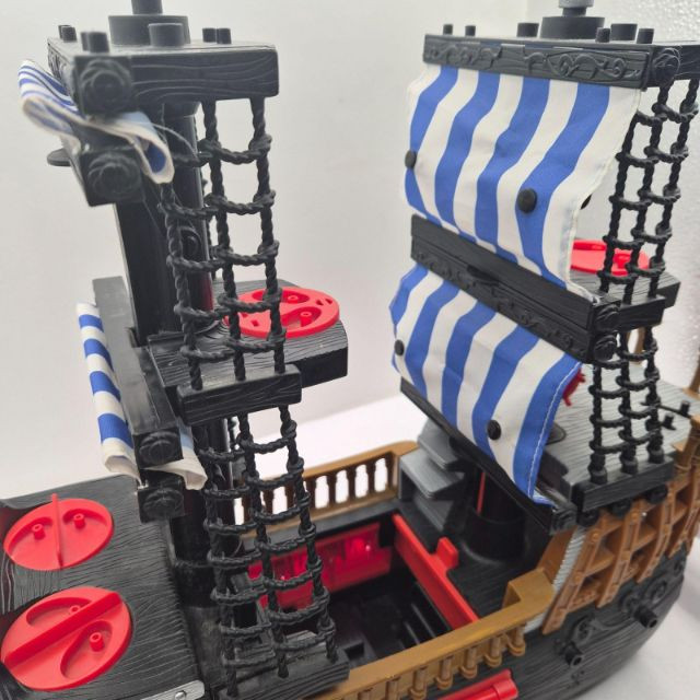 Set sail for imaginative play with this 2006 Fisher-Price pirate ship, a sturdy and adventure-ready vessel designed for young swashbucklers. Measuring approximately 18" x 18" x 6", this ship features a rolling base with bottom wheels for easy movement across floors and carpets. Whether docked in a playroom or cruising into a toy collection, it’s a fun and nostalgic piece from Fisher-Price’s golden era of action toys. Shows signs of gentle use but remains a great addition for collectors or kids who love high-seas storytelling.