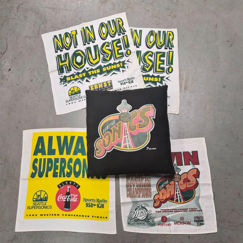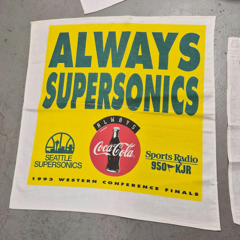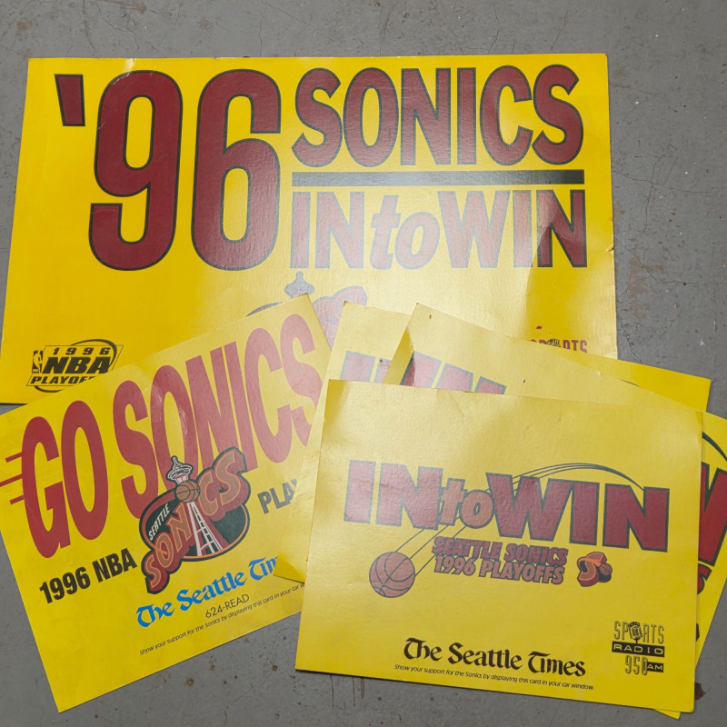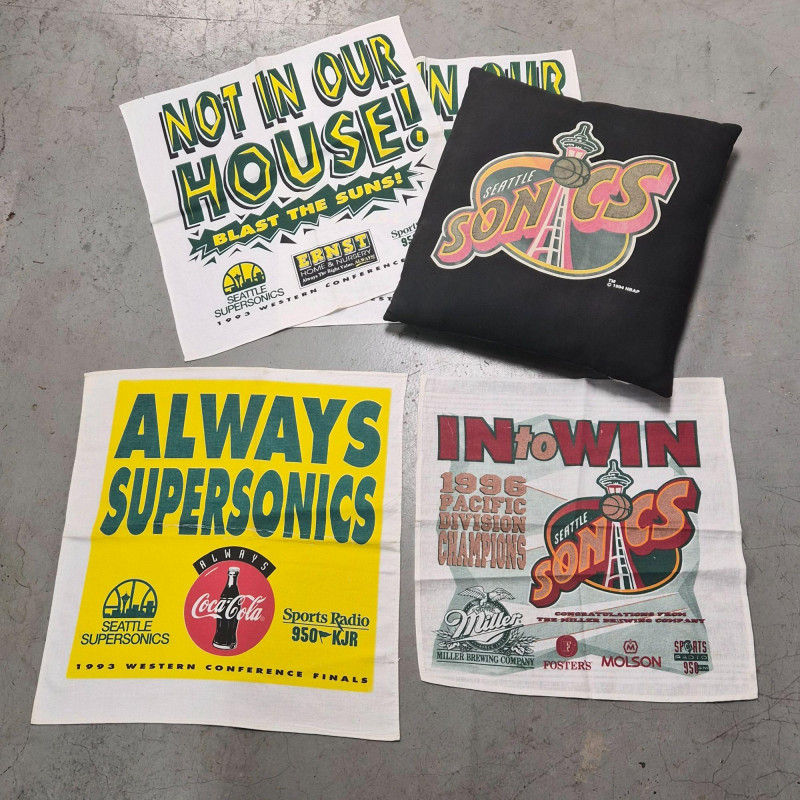 A spirited collection of 1990's, retro Seattle Super Sonics memorabilia, perfect for fans of classic NBA history and Pacific Northwest pride. Includes: A fun and nostalgic bundle for collectors, sports enthusiasts, or anyone looking to add retro flair to a game room or fan cave.