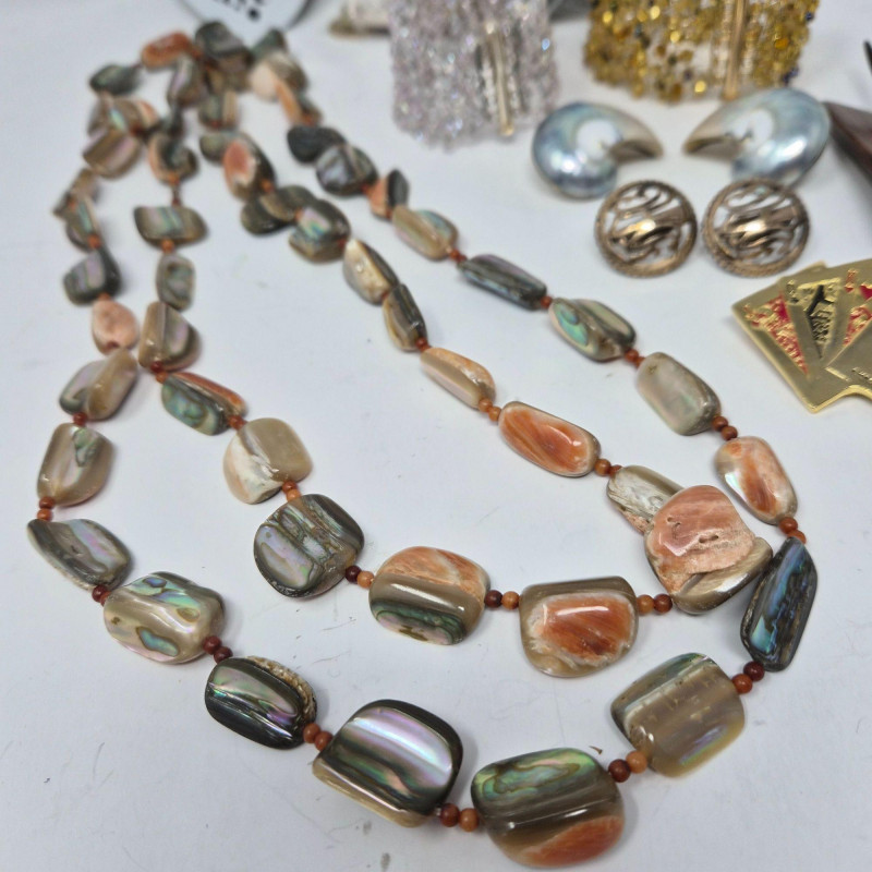 Lot # 160 - Handmade 925, GF Hand Beaded Bracelets, Abalone Necklace, Craft Extras
