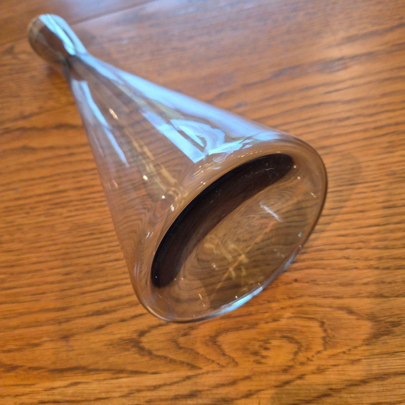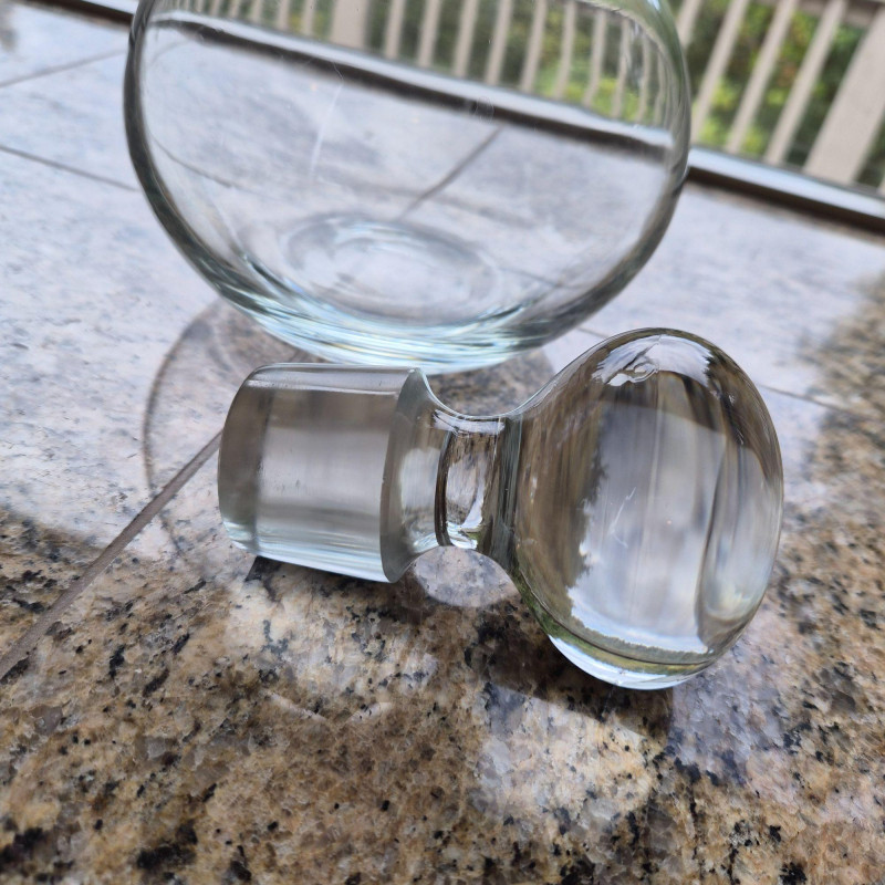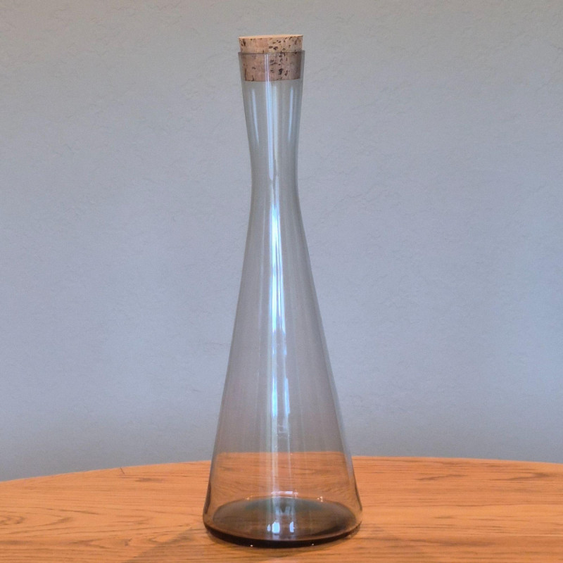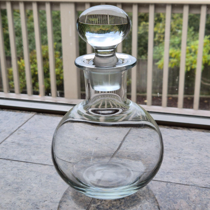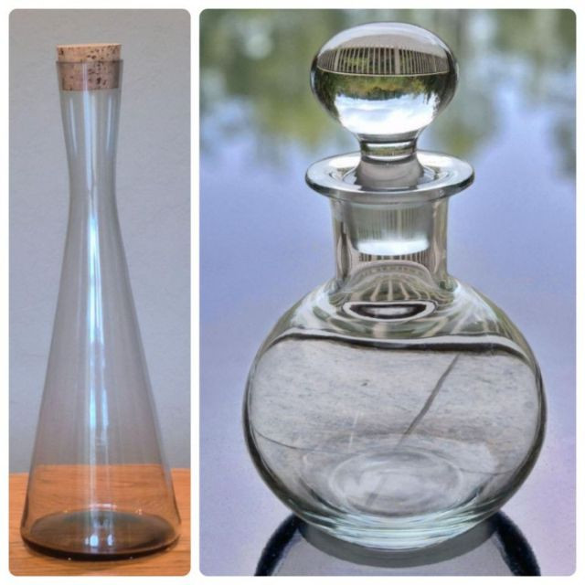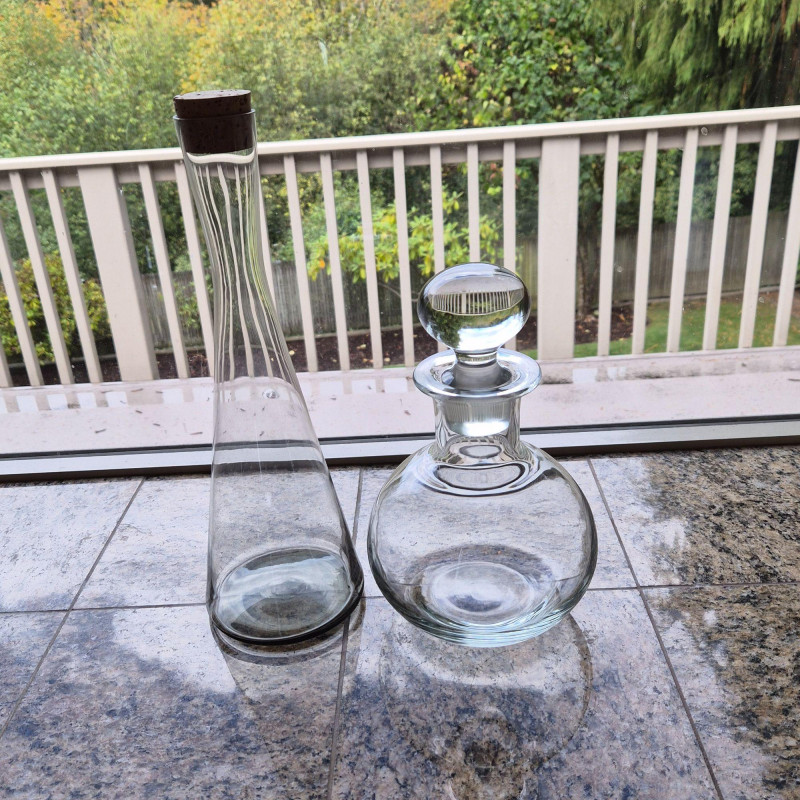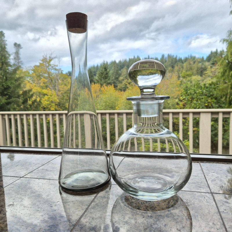 Pair of wine decanters blending mid-century style with classic crystal elegance: Together, they offer sculptural beauty and functional grace—perfect for entertaining, display, or adding vintage flair to a bar cart or sideboard.