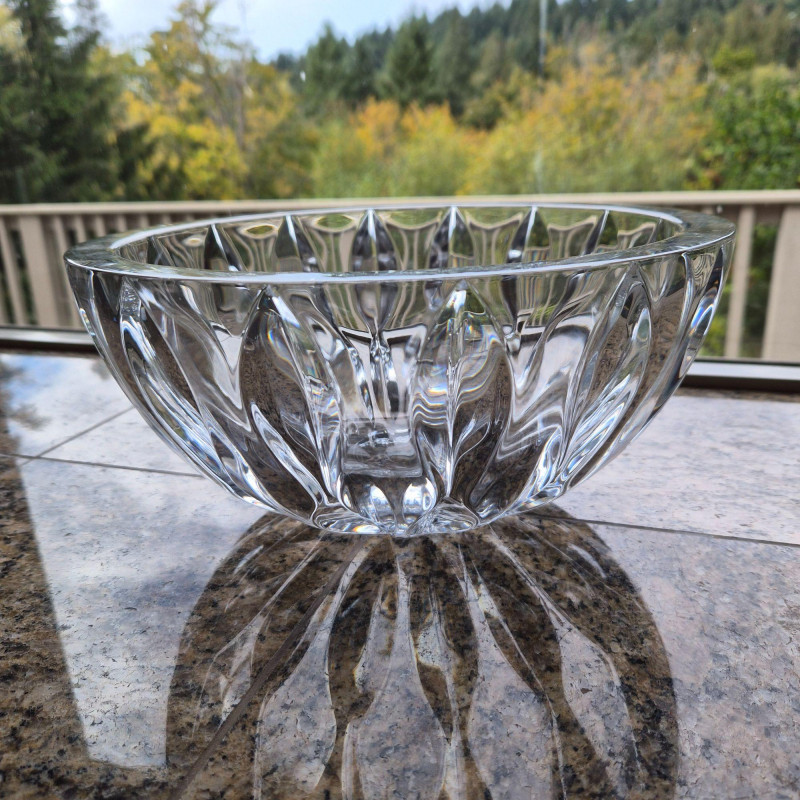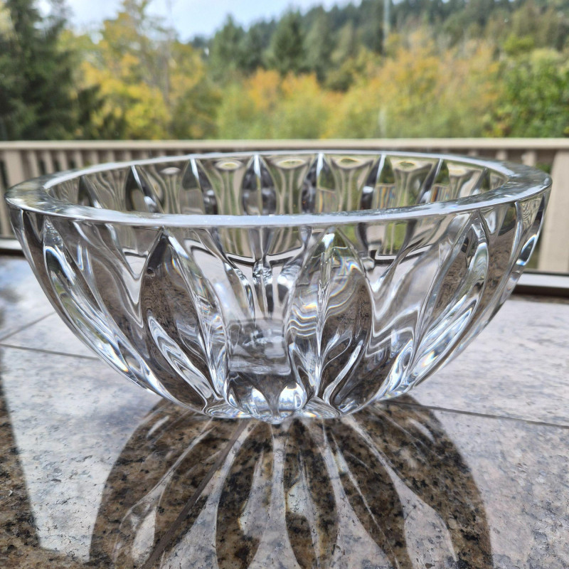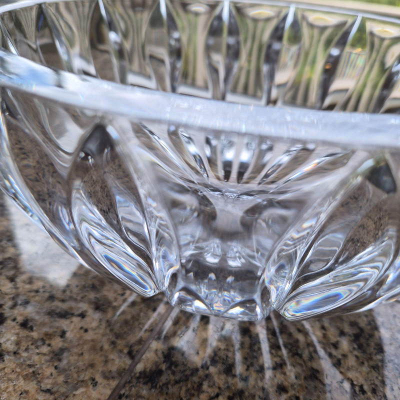 Stunning crystal bowl by Miller Rogaska, known for its refined brilliance and timeless design. Measuring 10" in diameter and 5" tall, this piece offers substantial presence with elegant clarity—perfect for display, serving, or anchoring a formal tablescape. Thick rim, heavy in weight, and beautifully cut pattern. Whether gracing a sideboard or catching candlelight, it reflects the craftsmanship and sparkle that define Rogaska crystal.