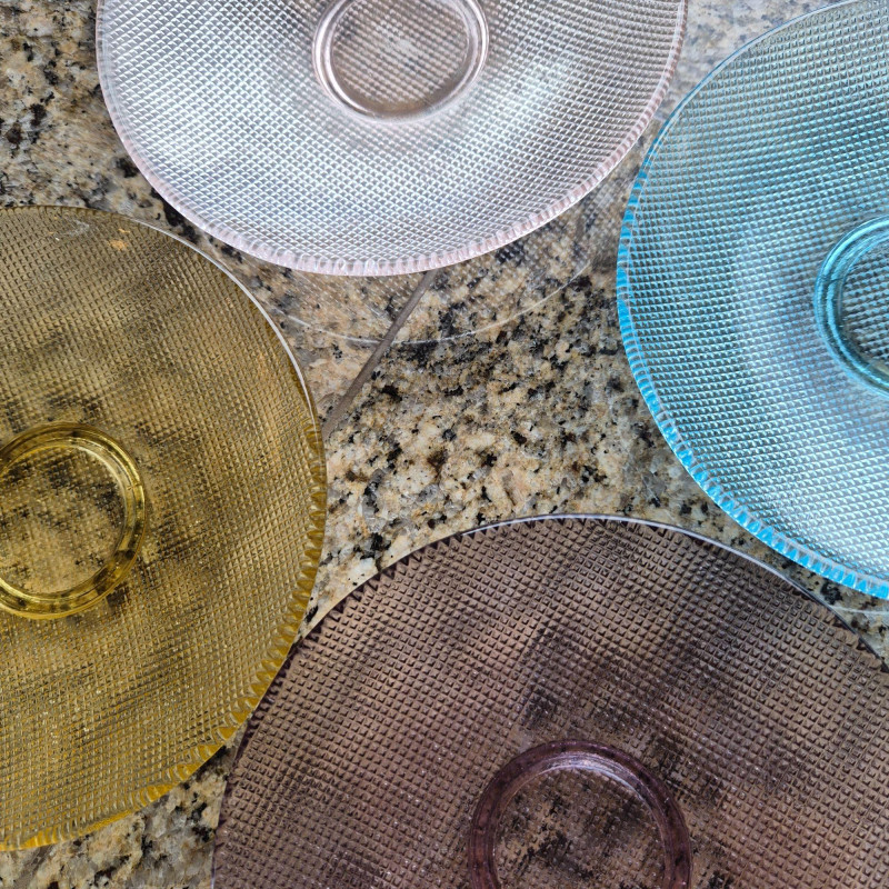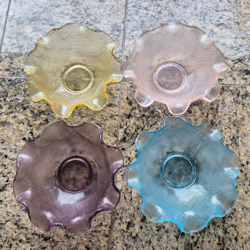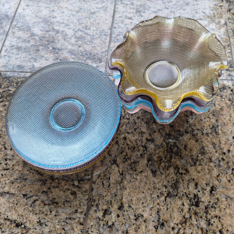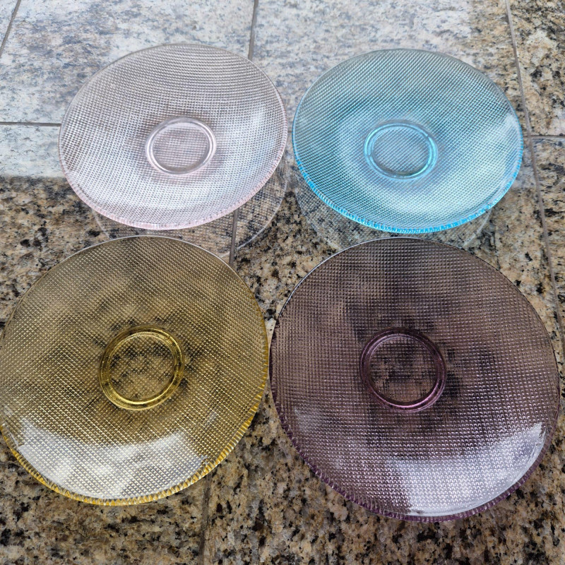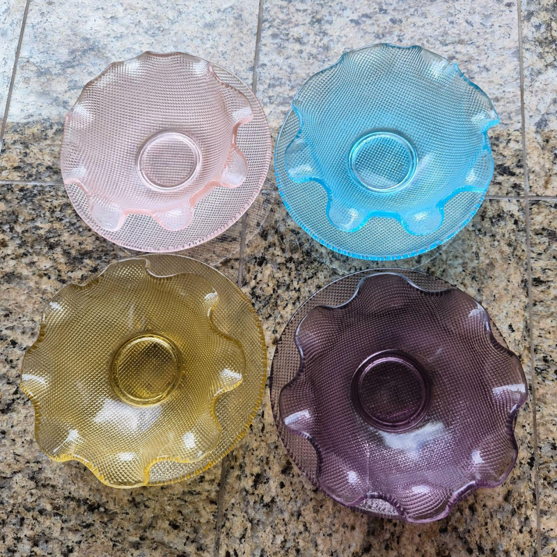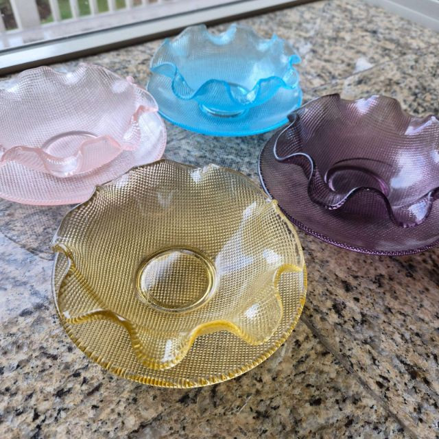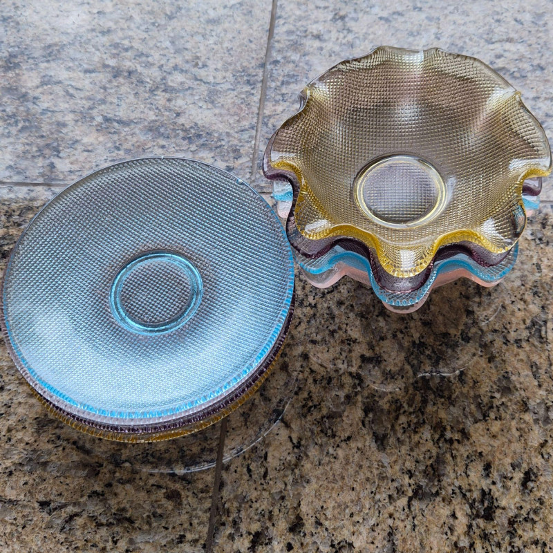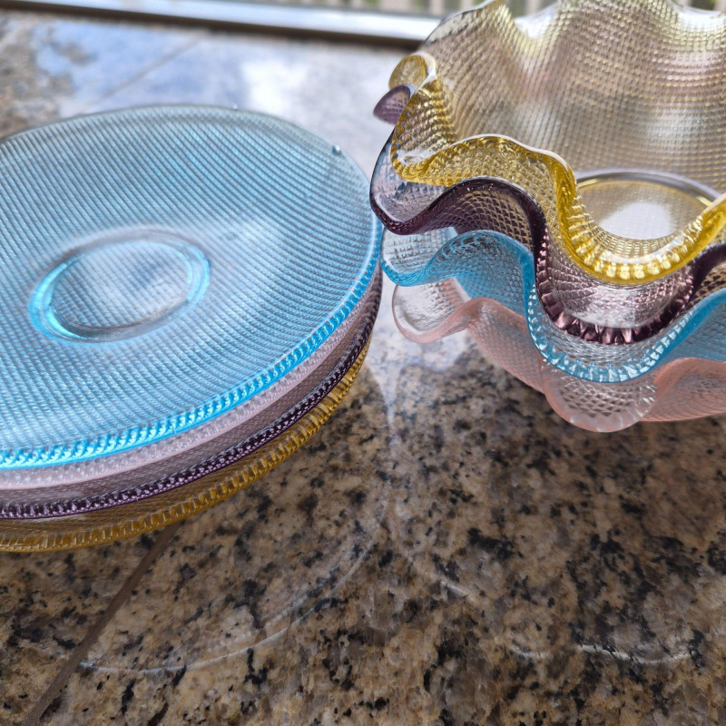 Lot # 206 - 1960's Vintage Colored & Textured Waffle Glass Dessert Set