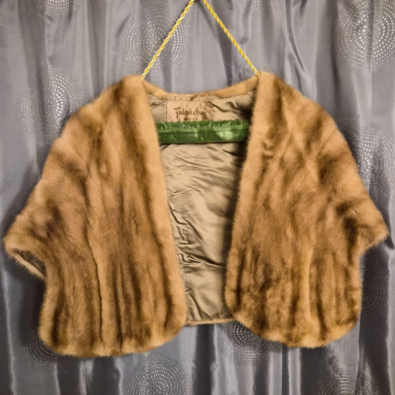 A beautiful vintage fur stole from Seattle’s iconic Frederick & Nelson department store. Rich brown in tone with a soft satin lining and two discreet pockets, this piece blends timeless elegance with practical charm. A Union-made fur label is present, though the type isn’t specified—it appears to be mink based on texture and sheen. In good condition and was carefully stored wrapped in plastic to protect against dust - wrap was taken off to photograph.