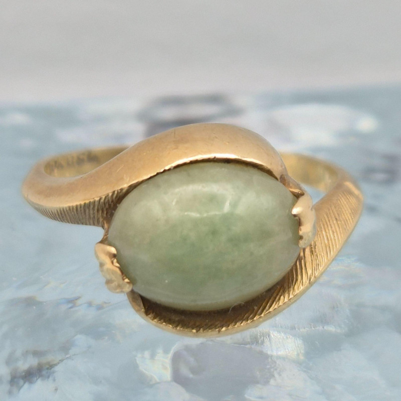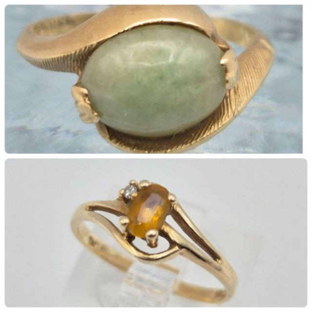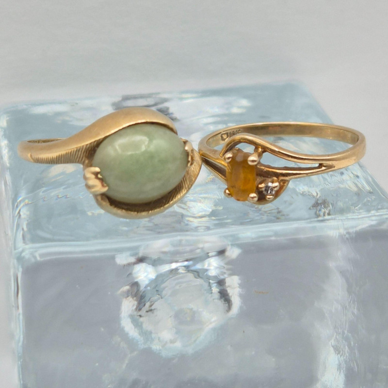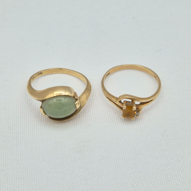 Lot # 22 - Vintage 10k Gold Rings – Jade Cabochon & Orange Topaz – Size 5