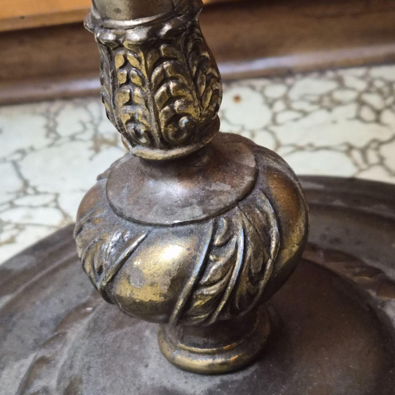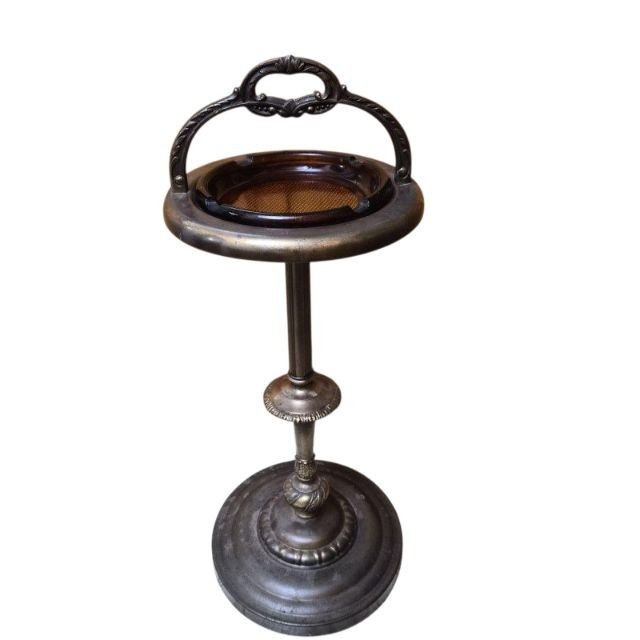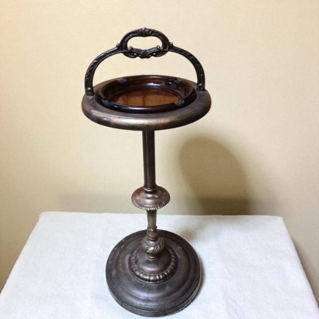 Lot # 23 - 1940's Brass Stand with Amber Glass Ashtray 28-Inch Tall