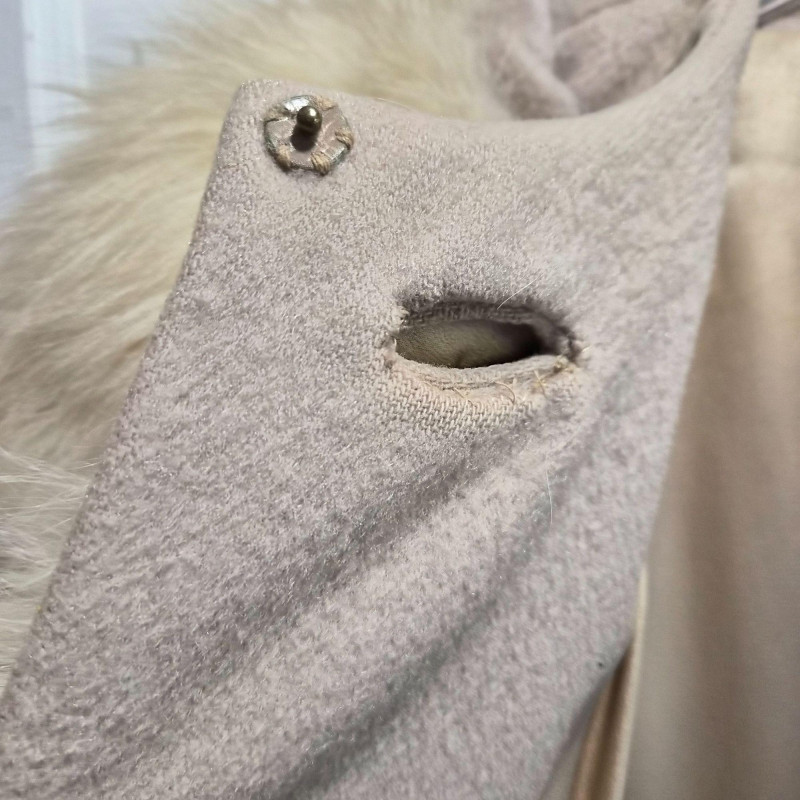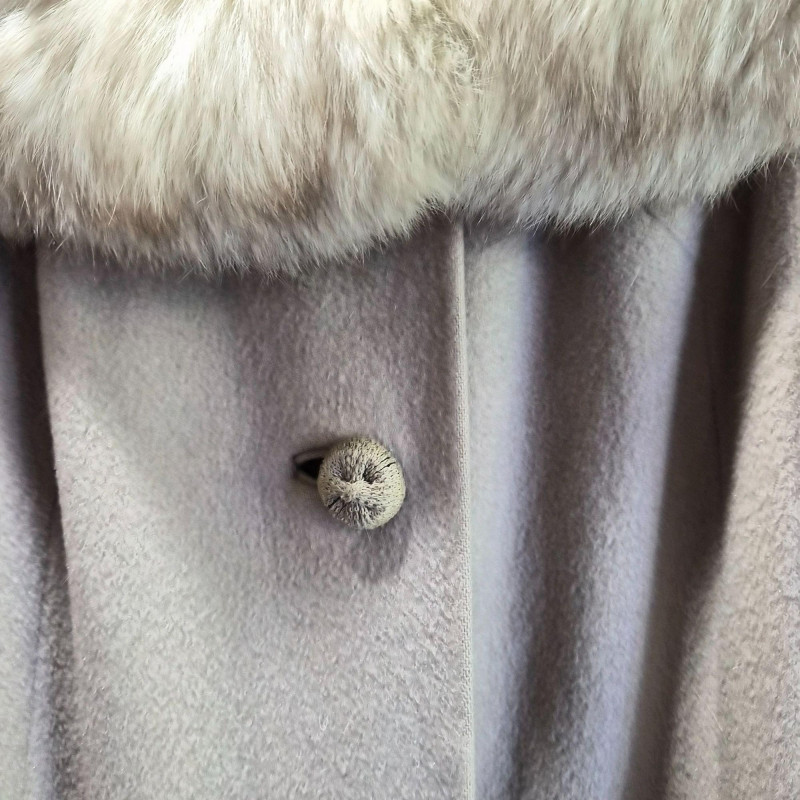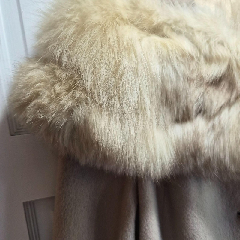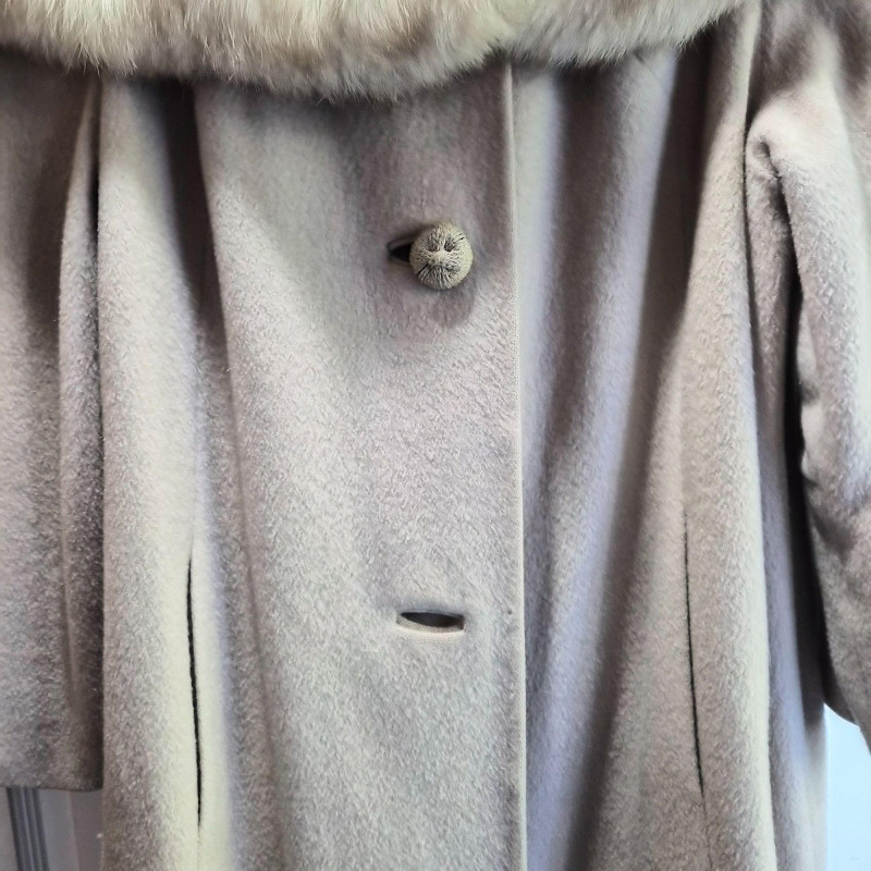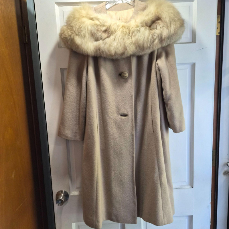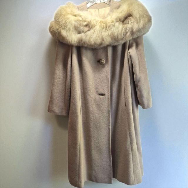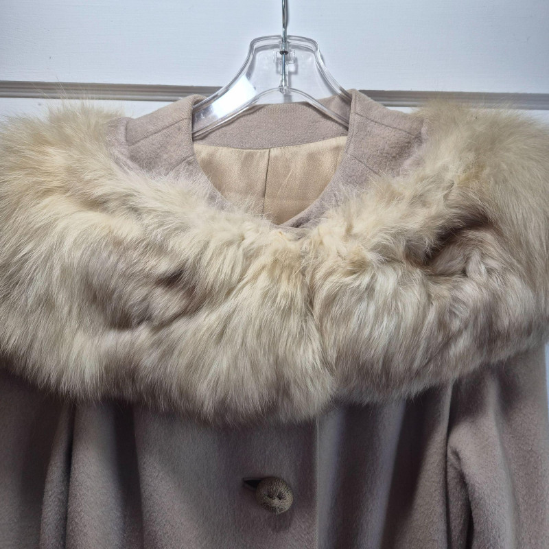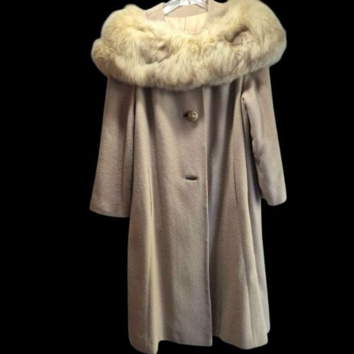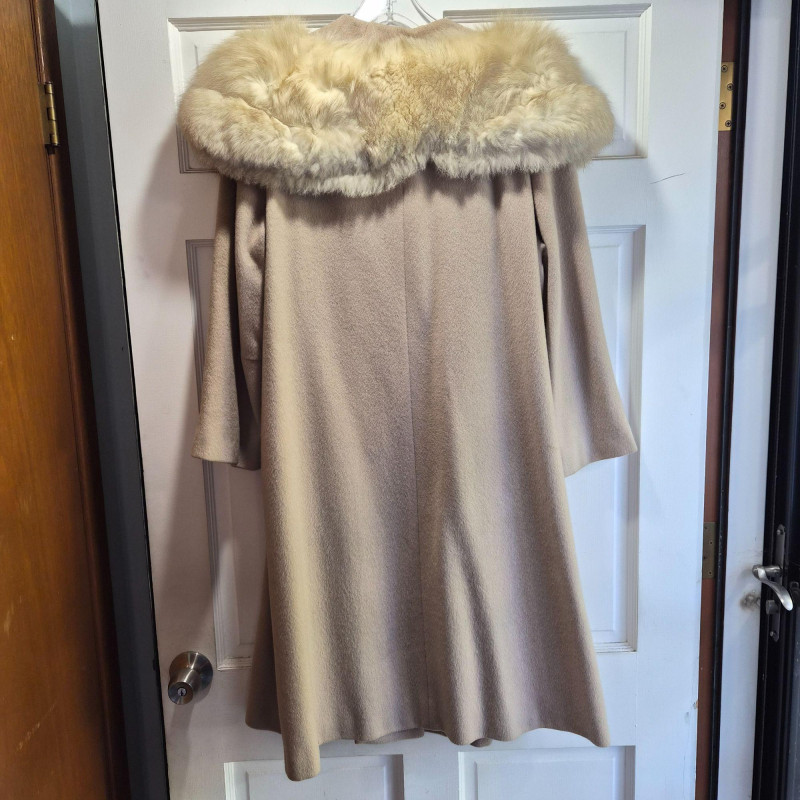 Lot # 37 - Beige Wool Coat with Fur Collar, Size Medium (Union Made)