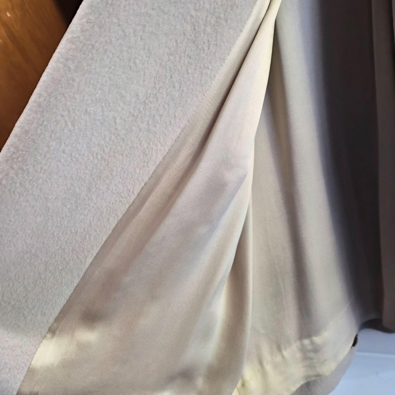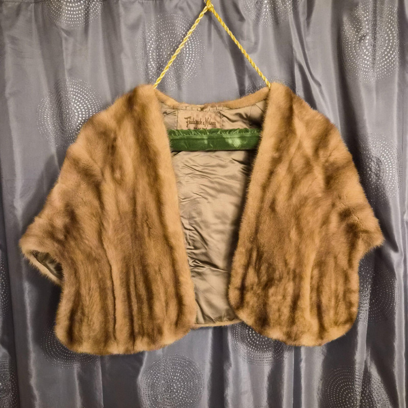A classic light beige wool coat with a sewn-on fur collar, marked Union Made, approximately a sized Medium. This vintage piece features: A timeless silhouette with understated elegance, ideal for cold-weather styling or vintage wardrobe restoration. The fur accent adds warmth and sophistication, while the union label speaks to mid-century craftsmanship.