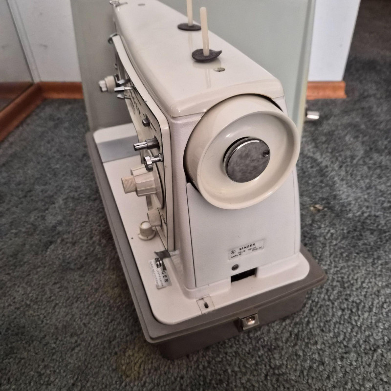 A sleek mid-century Singer Stylist Zig Zag Model 466 portable sewing machine, designed for versatility and ease. This compact unit features classic styling and a sturdy build, ideal for collectors, restorers, or display. Whether you're chasing vintage charm or planning a creative restoration, this Singer offers nostalgic appeal and mechanical intrigue