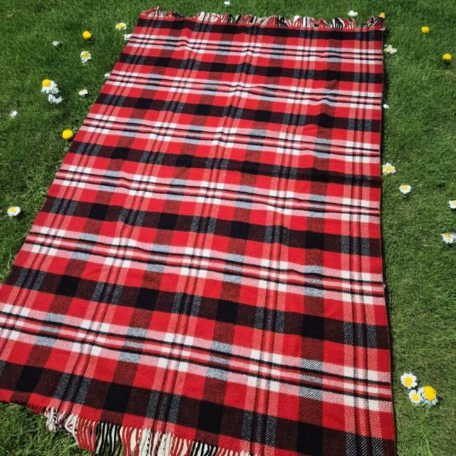 Lot # 52 - Red Plaid Wool Throw Blanket