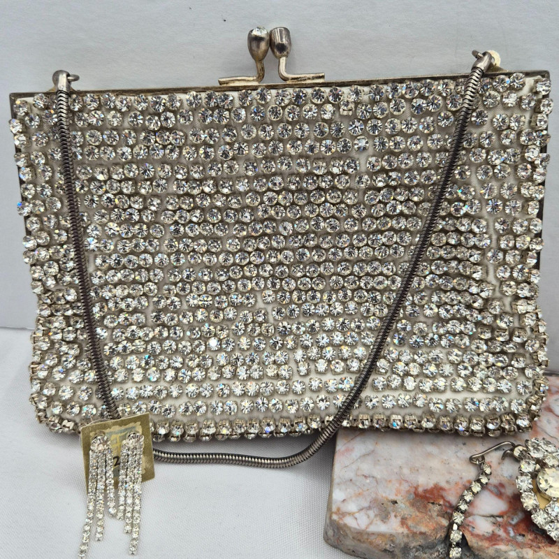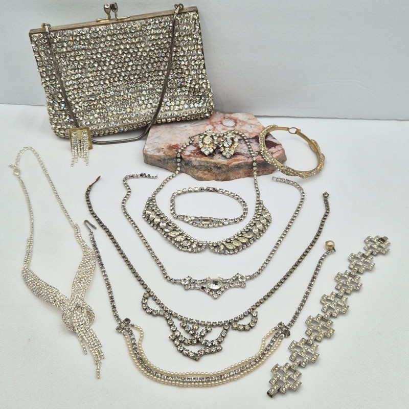 Lot # 65 - Rhinestone Jewelry - Necklaces, Bracelets, Earrings & Evening Purse