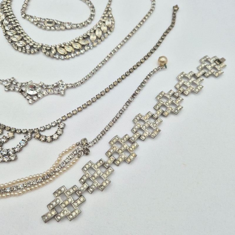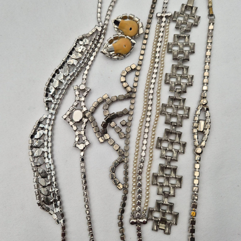 A sparkling mix of rhinestone jewelry and accessories, perfect for wear, repurposing, or crafting. This lot includes: