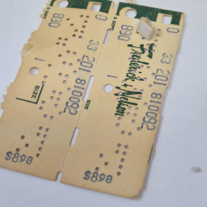 A graceful and sculptural ladies' turban-style hat from Frederick & Nelson, Seattle’s iconic department store. Union made tag and original price tag still attached, making this a true piece of collectible millinery. This vintage piece features: Whether styled for retro fashion, theatrical costuming, or millinery collecting, this hat offers a tactile nod to Pacific Northwest retail history and timeless headwear design